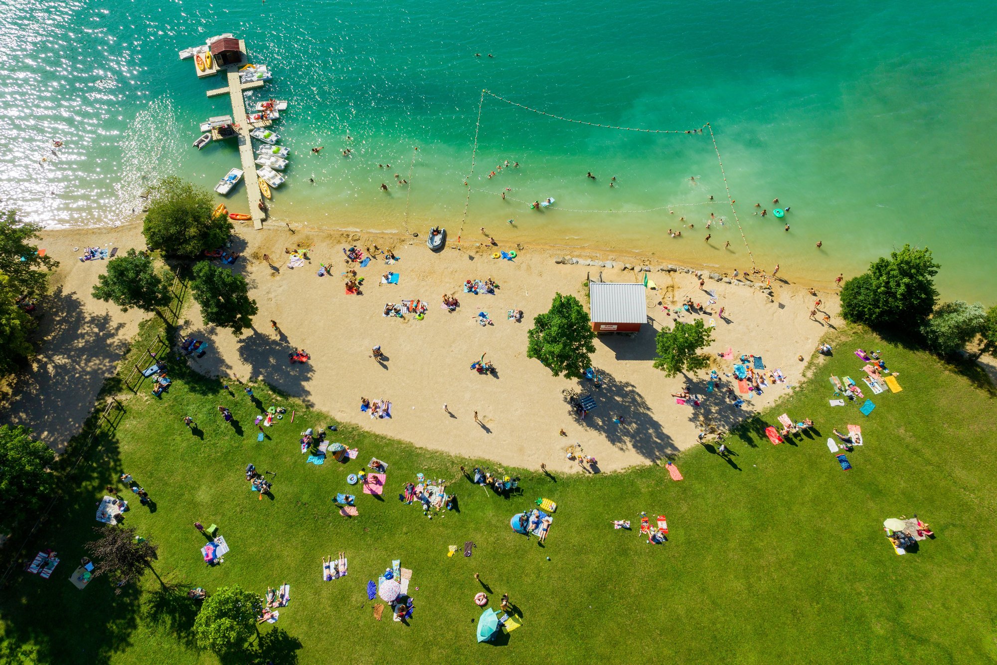 Vous pourrez profiter des plages et des sentiers de randonnée autour du lac. Sur place, vous trouverez des terrains de sport (tennis, basket, foot, beach volley), des aires de jeux et de pique nique ainsi que des commerces: glacier, snack, bar, mini-golf, lancer de hache, location de paddle, pédalos et canoës.