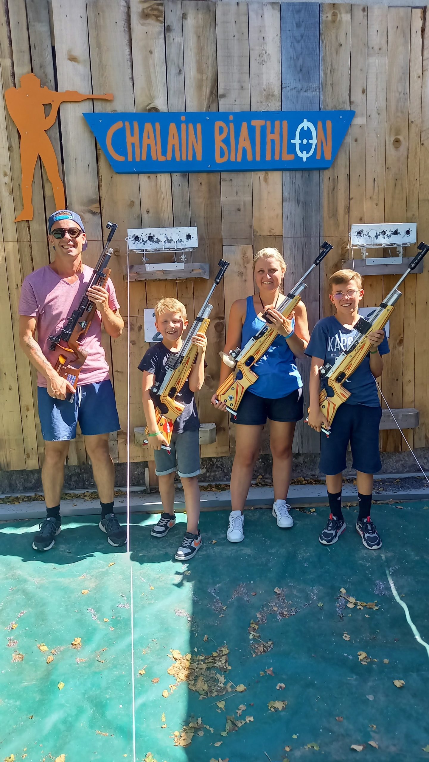 Le biathlon, une activité à découvrir en groupe, en famille ou entre amis. Dextérité, maitrise de soi et gestion du souffle sont des qualités qui vous aideront à bien tirer à la carabine, une fois le parcours ludique rempli d’obstacles bouclé à pied. Affrontements dans la bonne humeur et fous rires assurés !! Ce loisir sportif se situe à moins d'1km du lac de Chalain.