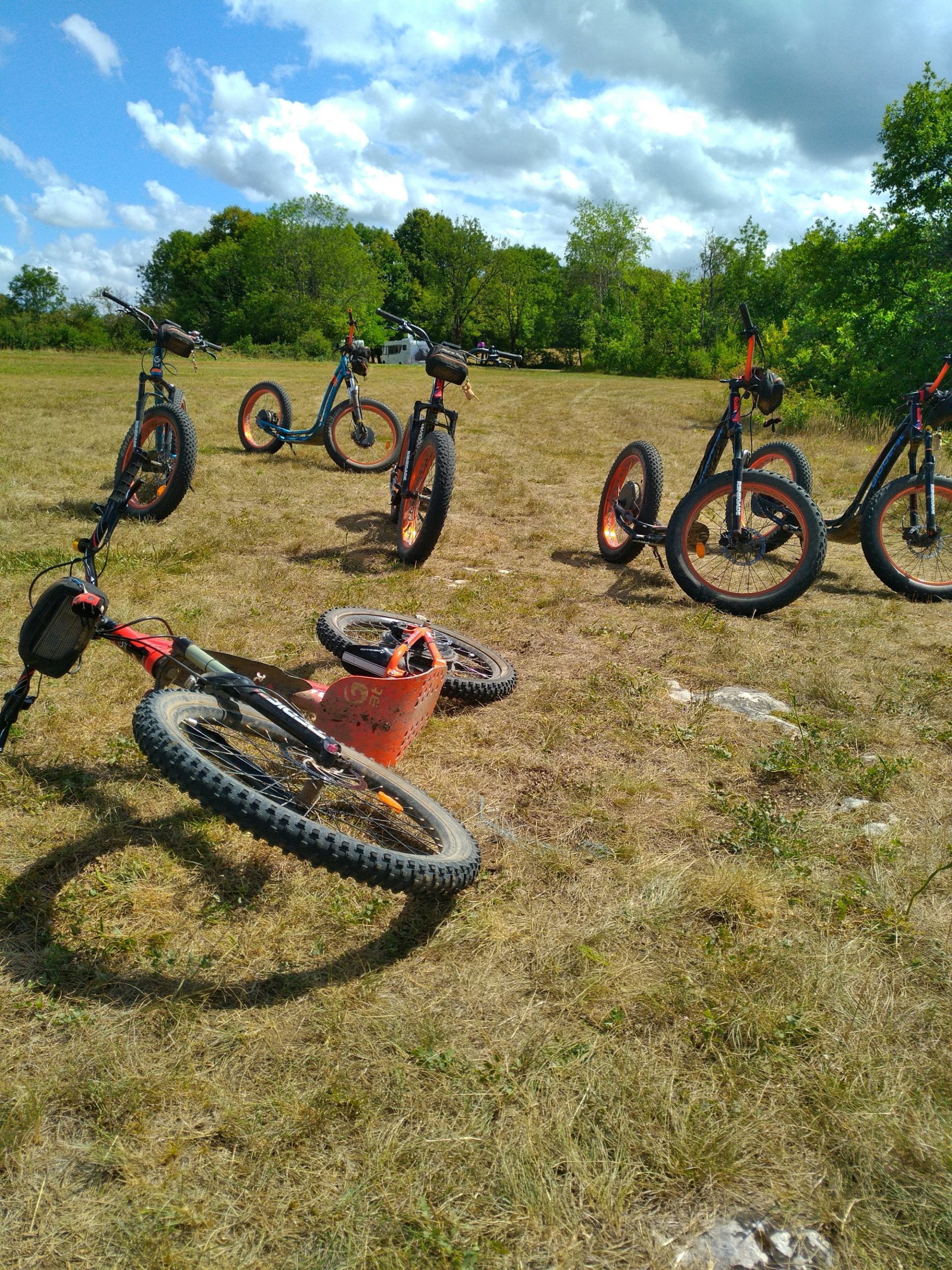Location de trottinettes tout terrain électriques avec accompagnateur pour 1h à 2h de balade à votre rythme.