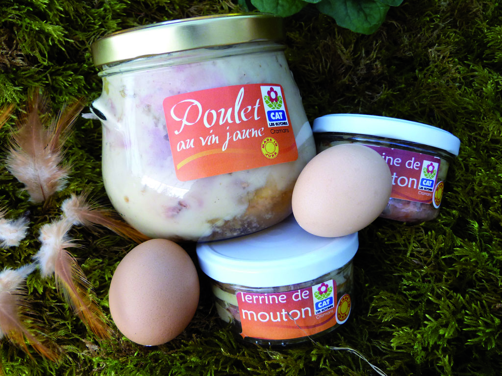 Etablissement de services et d'aide par le travail, les Glycines proposent des produits fermiers de qualité : poulets, oeufs, agneau, terrines, fleurs.