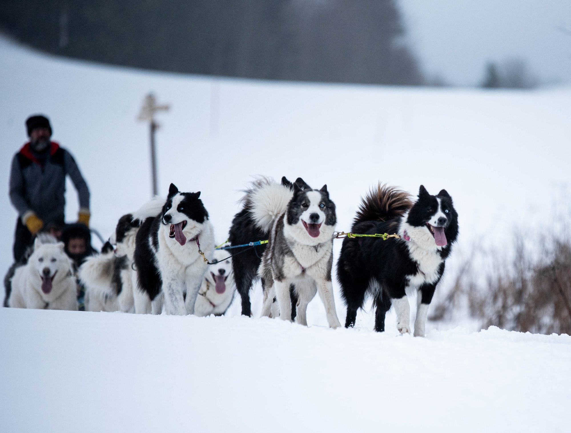 En prenant place assis à bord d’un traîneau profitez du paysage à travers combes et forêts.