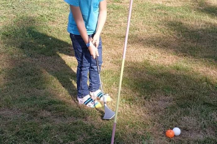 > Activités swin golf : parcours 9 trous. Départ vers un trou de 30 cm de diamètre, à l’aide d’une canne unique multiface, en le moins de coup possible.