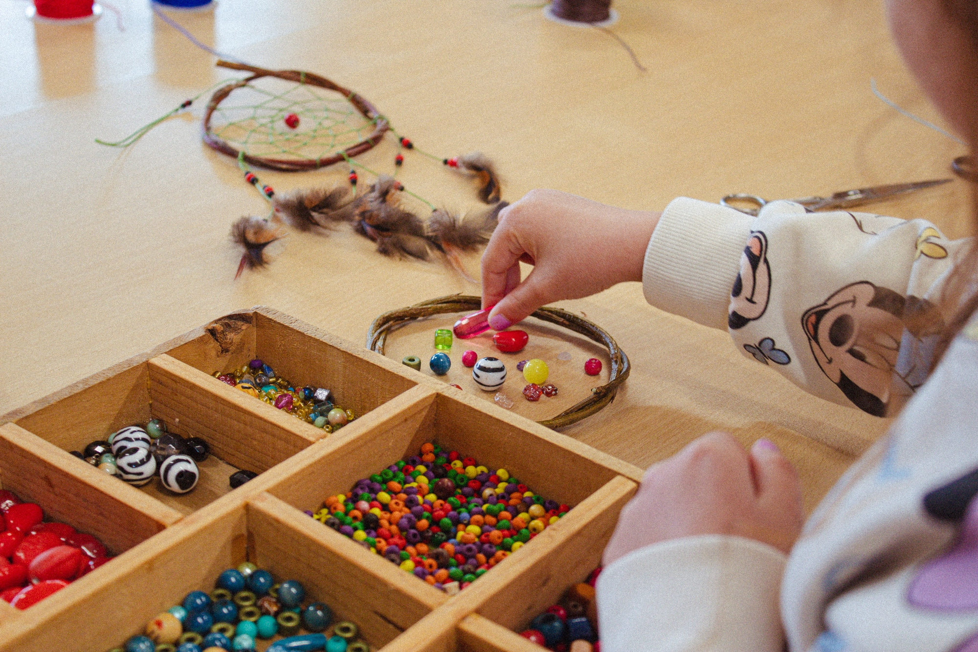 Un atelier créatif où les enfants imaginent et fabriquent leur propre attrape-rêves à partir de fils, perles colorées et plumes...