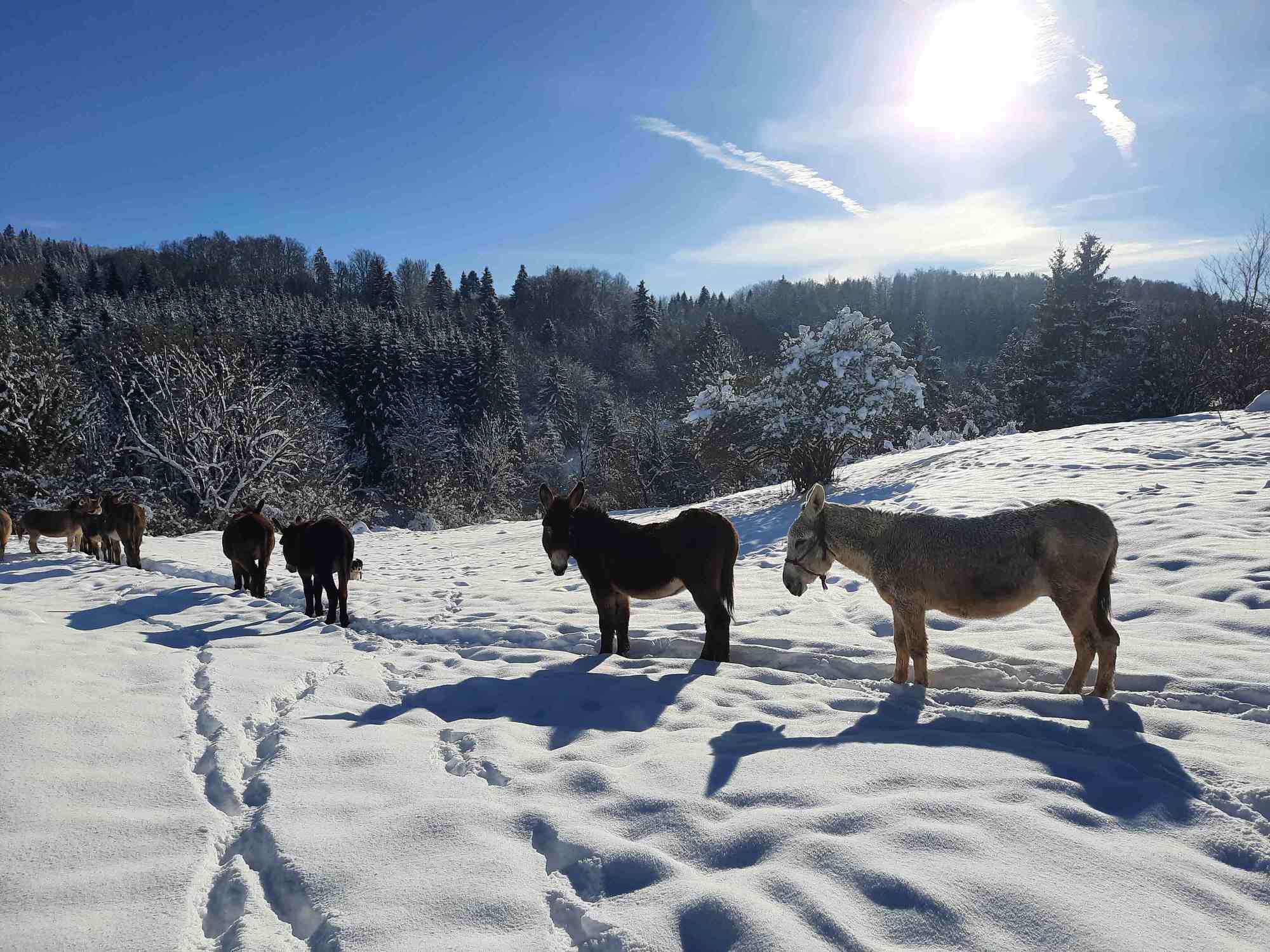 La balade s'adresse aux personnes souhaitant découvrir l'hiver dans le Haut-Jura avec un âne le temps d'une balade facile et conviviale accompagnée de l'anière.
