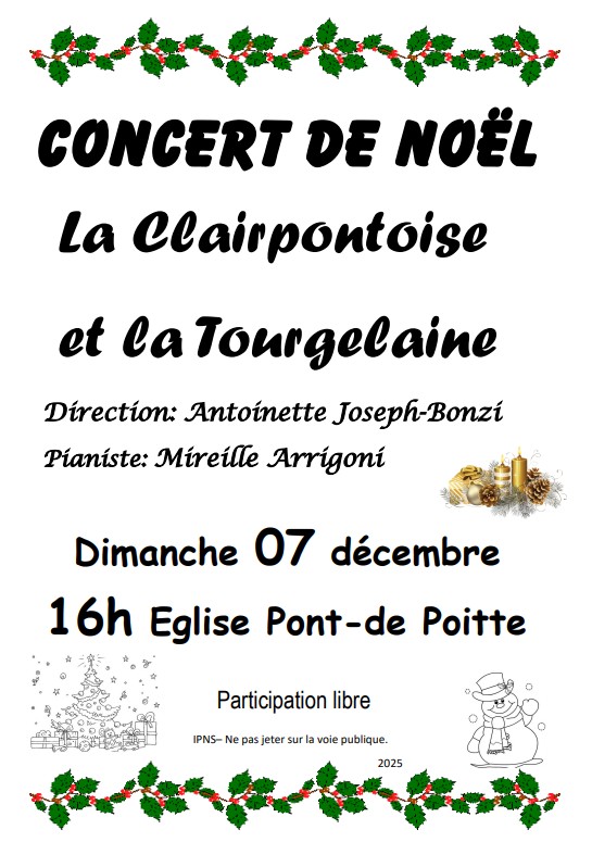 Concert de Noël de La Clairpontoise et la Tourgelaine le dimanche 07 décembre à 16h l'église Pont-de Poitte.