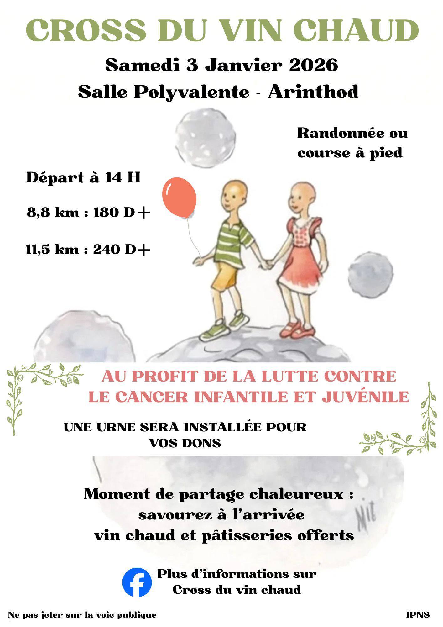 Cross du vin chaud (course à pied ou randonnée) le 3 janvier, départ à 14h à la salle polyvalente d'Arinthod.