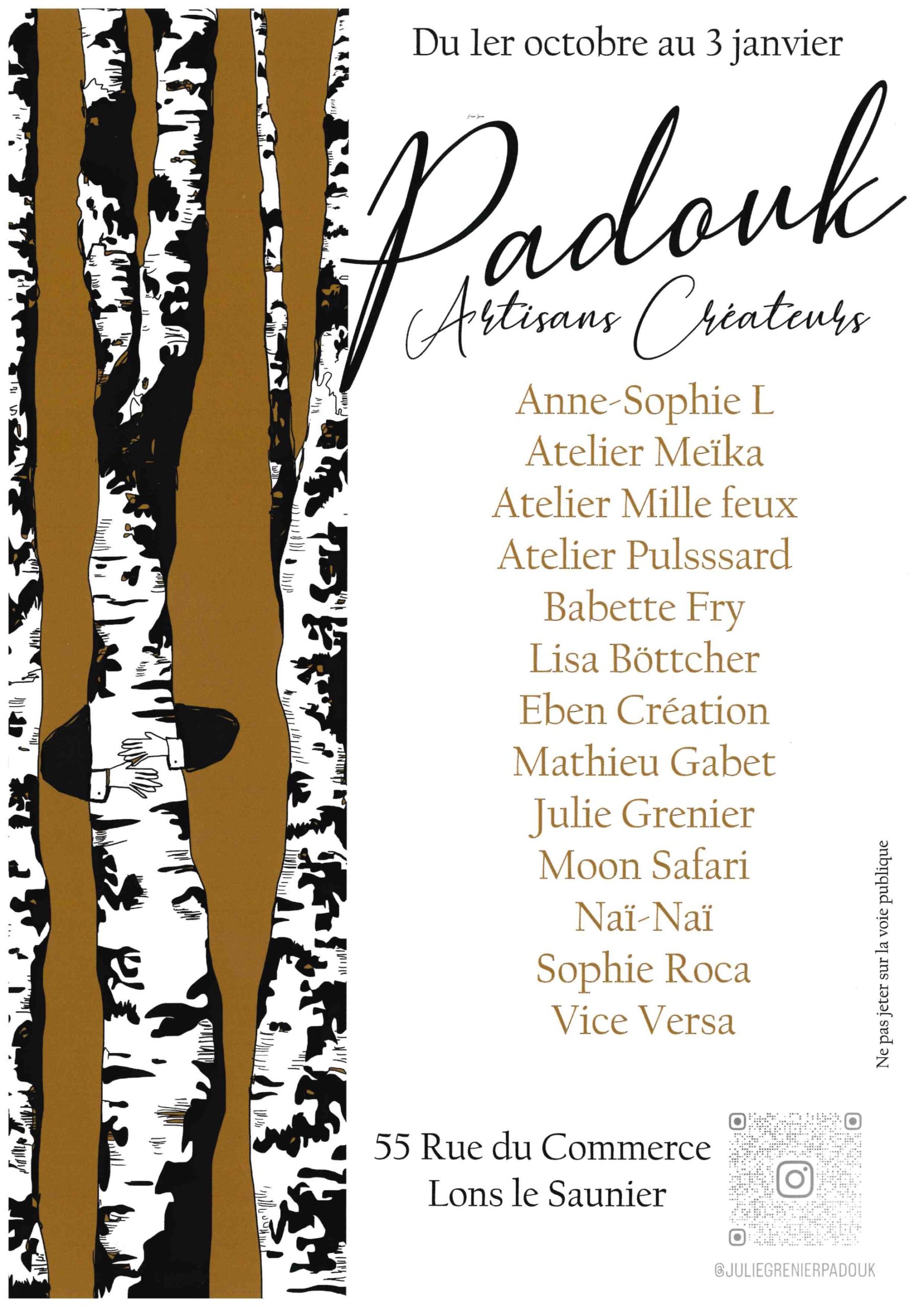 Une vitrine toujours soignée, un espace chaleureux et élégant ; Julie, Johanna, Lisa, Charlotte et Mathieu vous accueillent dans leur boutique indépendante d'artisanat d'art. Mobilier, luminaires, céramique, coutellerie, graphisme, bijoux, mode, décoration, etc... Tous les 3 mois nous invitons de nouveaux artisans à se joindre à nous, afin de vous faire découvrir la richesse et l'excellence des créateurs locaux. Nous organisons également des ateliers créatifs. Planning disponible en boutique Retrouvez toute notre actualité sur instagram @padouk_la_boutique