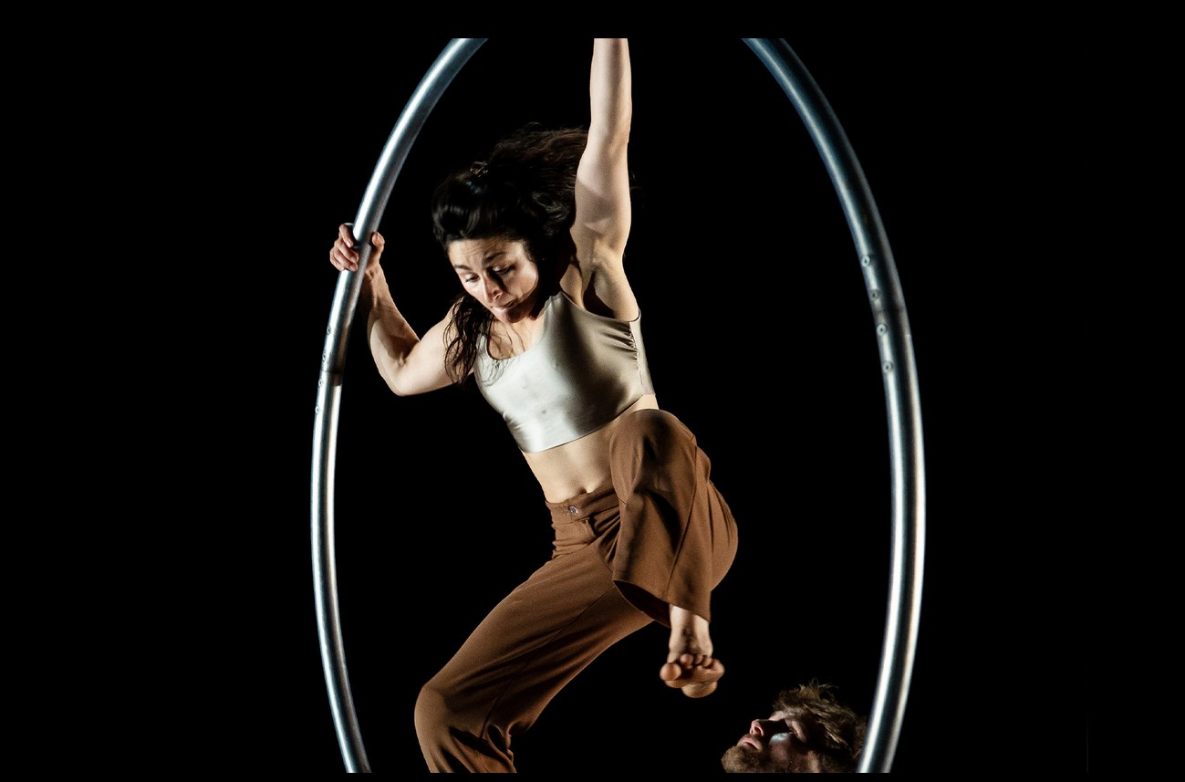 Jef et Marica se sont lancés dans cette première création commune avec l'idée de mêler leurs différences pour en faire une force. Jef travaille les équilibres, Marica se concentre sur les chutes. Lui est pacifiste et indécis, elle convaincue et conflictuelle. Utilisant leurs corps et personnalités très décalés, mêlant acrobaties et jonglerie, ils explorent magnifiquement l'avantage et la difficulté de penser en antithèse au sein du couple, pour construire un voyage corporel à l'intérieur de cet anneau qui les unit. Entre confrontation et complicité, les deux circassiens dont les corps se déforment parfois de façon surréaliste, placent l’agrès en rupture avec ses usages habituels, le faisant personnage à part entière. Avec sensibilité, délicatesse, mais aussi brutalité, se cherchant réciproquement dans l’autre, les deux comédiens forment une grande arche, éminemment artistique, qui les relie au public tout en panache.