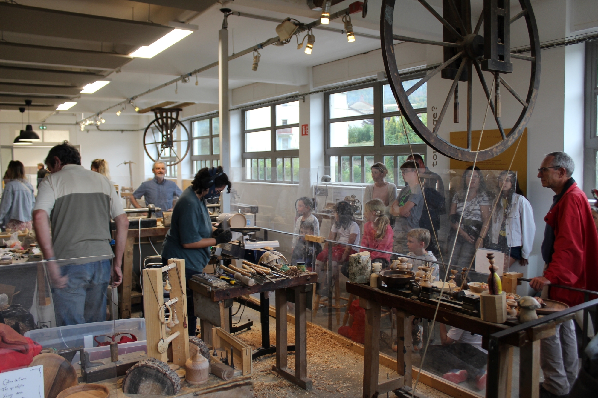 Pour la période de Noël, la visite du musée de l'Atelier des savoir-faire inclut une démonstration de tournage sur bois.