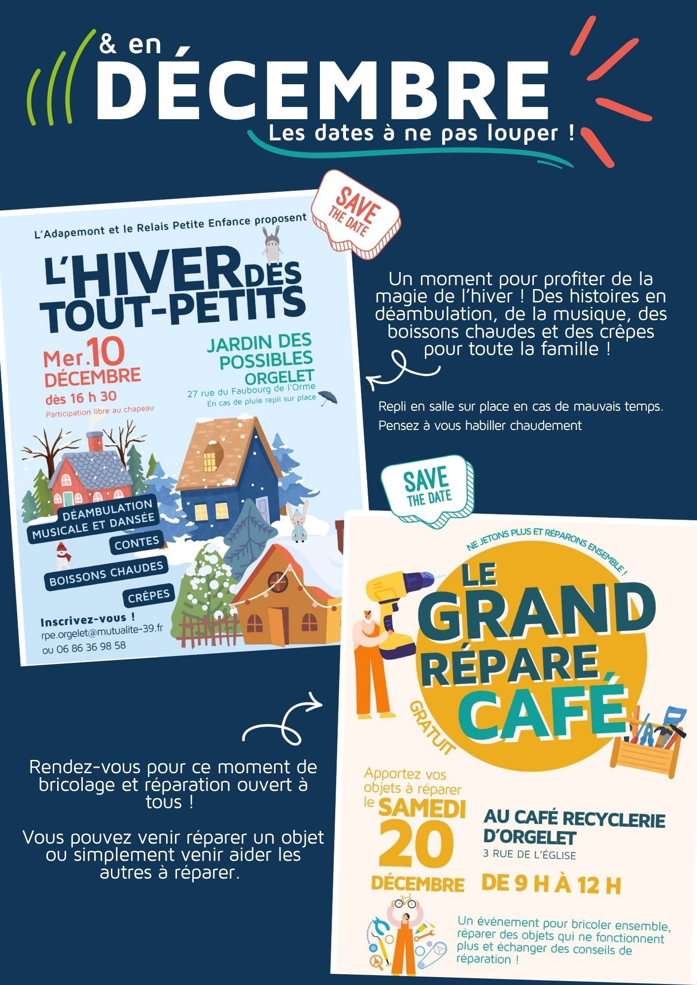 Déambulations musicales et danses, contes, crêpes et boissons chaudes.