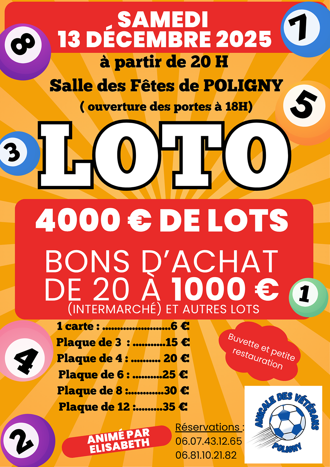 Le loto est animé par Elisabeth. 4 000 € de lots dont des bons d'achat de 20 à 1 000 €.