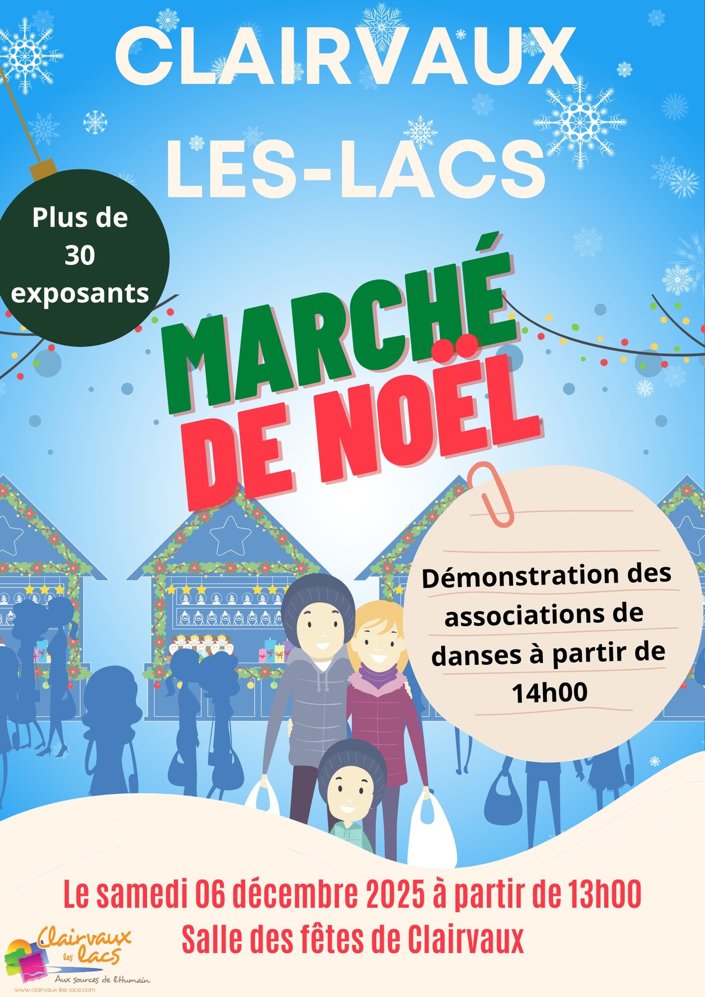 Marché de Noël le 6 décembre à partir de 13h à la salle des fêtes de Clairvaux-les-Lacs, exposition d'une trentaine d'artisans.