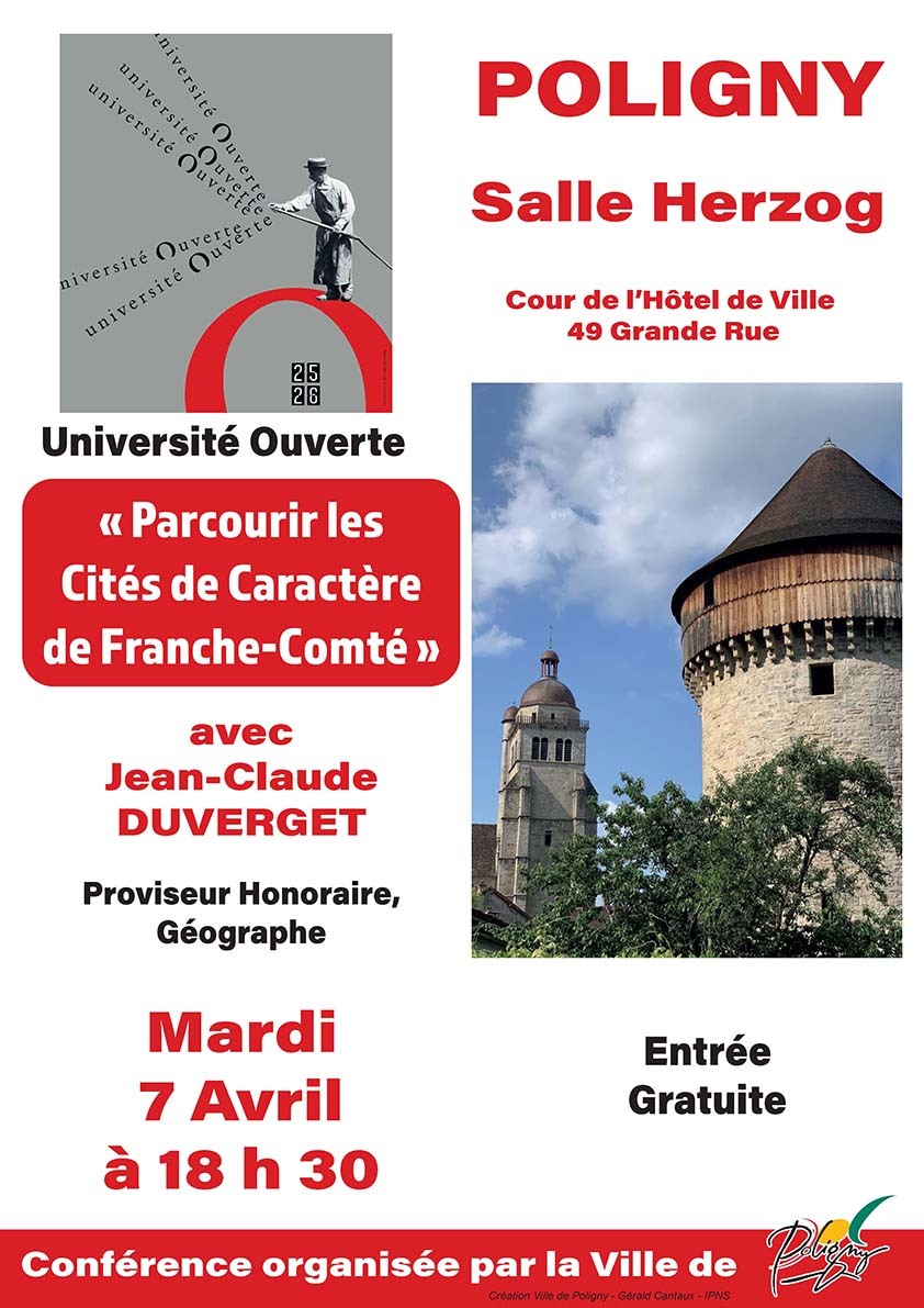 Dans le cadre de l'Université Ouverte accueille une conférence sur "Parcourir les Cités de Caractère de Franche-Comté". La conférence est animée par Jean-Claude Duverget, proviseur honoraire et géographe.