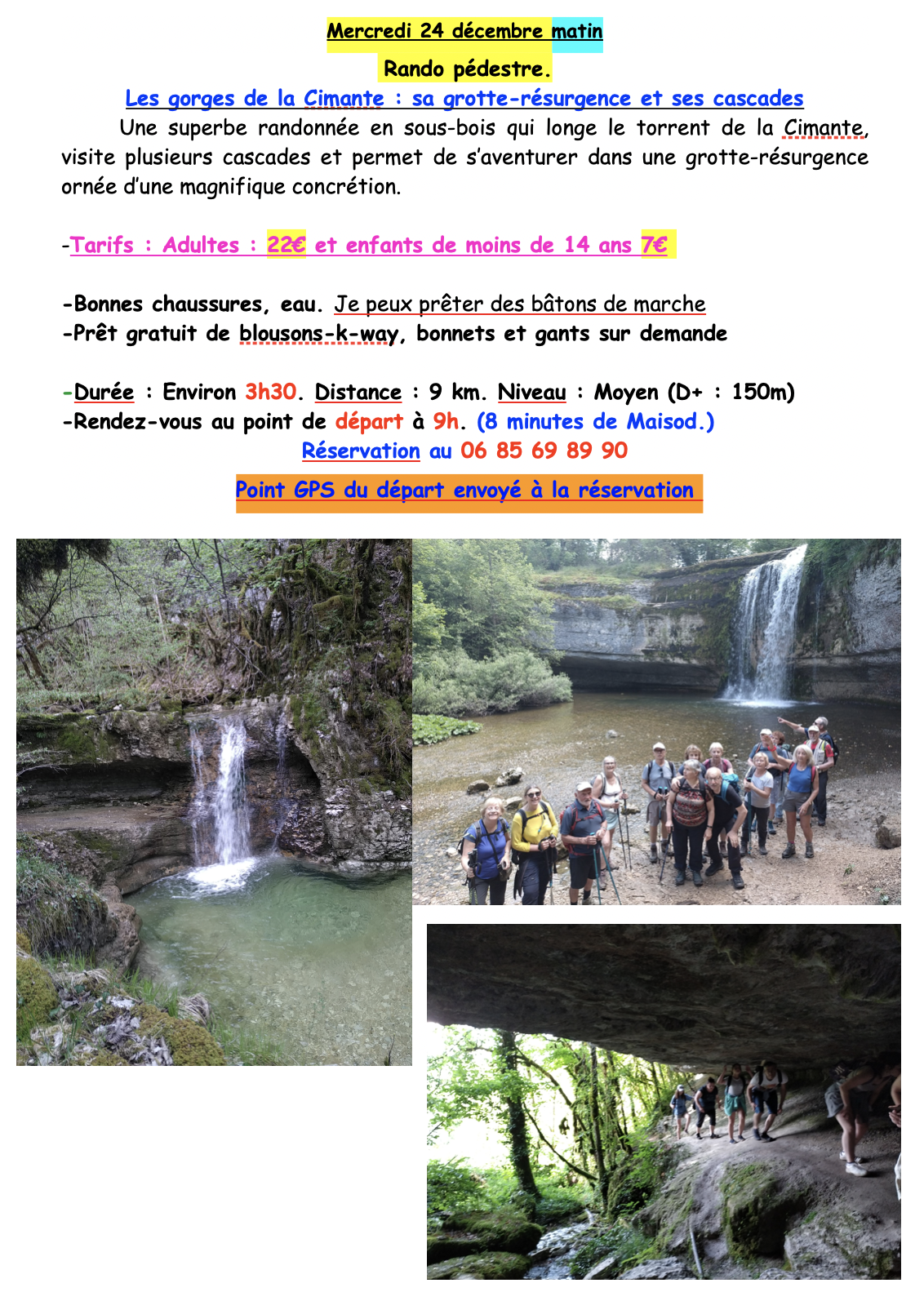 Randonnée pedestre de 9km (niveau moyen) dans les Gorges de la Cimante le 24 décembre de 9h à 12h30, point GPS communiqué après la réservation (à 8 minutes de Maisod).