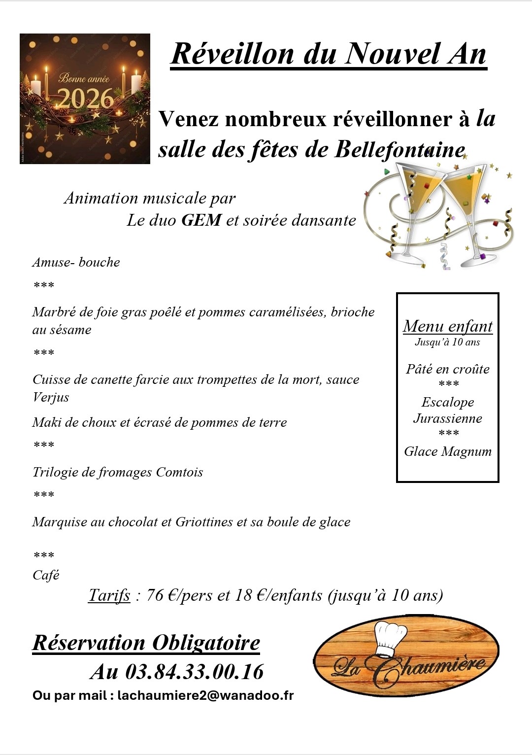 Un menu du Jour de l'An vous est proposé avec animation musicale par Gem Duo.