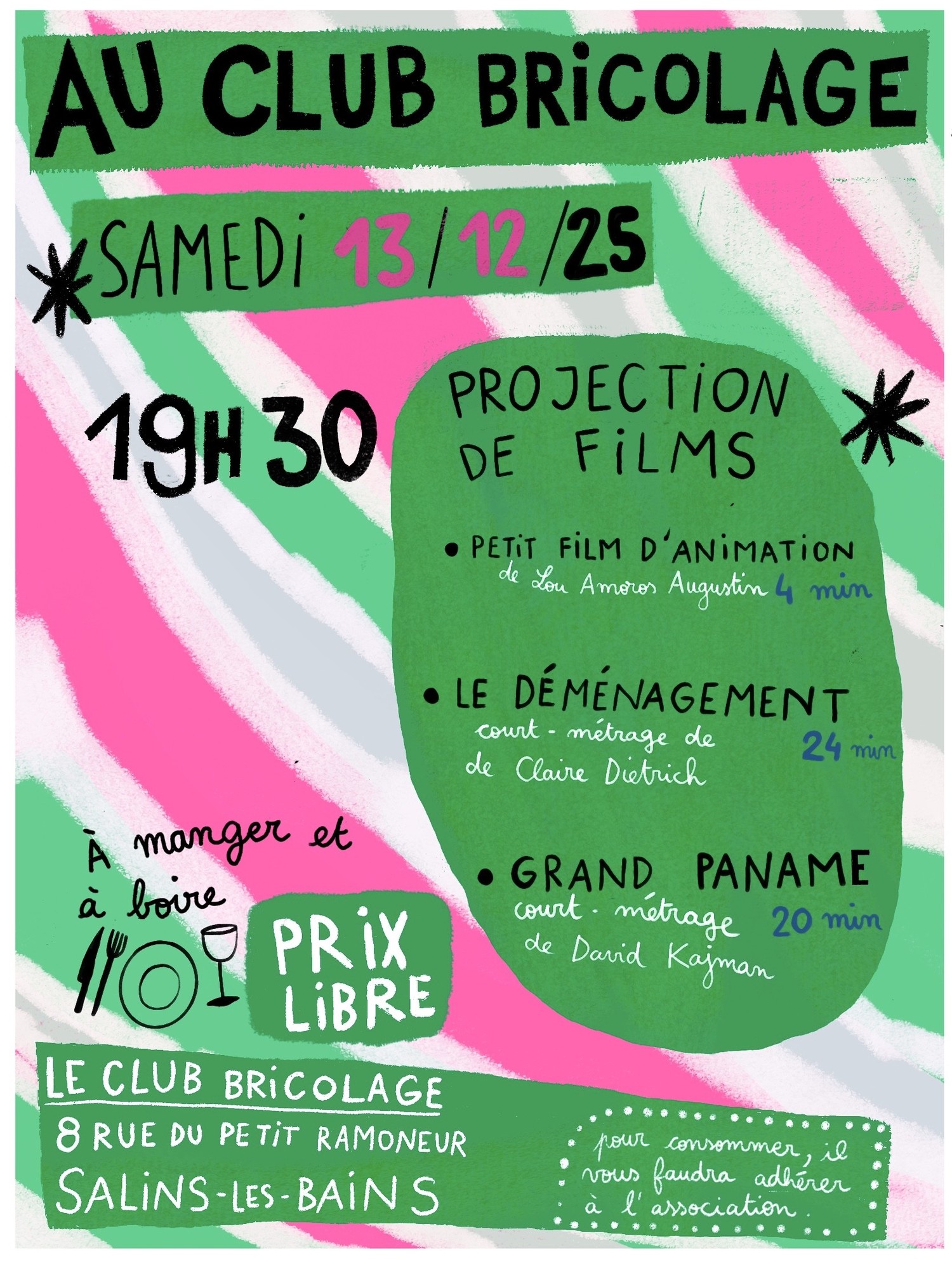 Le Club Bricolage organise un soirée de projection de court-métrages à partir de 19h30.