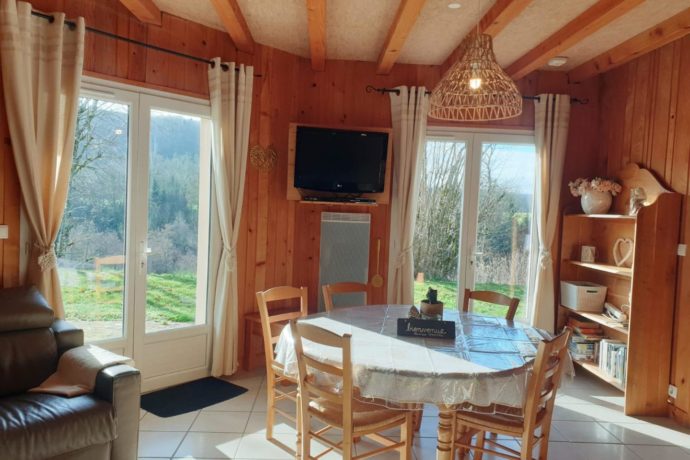 Maison indépendante de plain-pied de grand confort. Intérieur bois, cuisine entièrement équipée, salon-séjour, poêle à bois, salle d'eau. ch1: 1 lit 2 pl, ch2: 2 lits 1 pl, ch3: 2 lits 1 pl superposés. Terrasse couverte de 30m², salon de jardin, barbecue, parking couvert. Chauffage électrique et bois. Charges non comprises. Tarifs variables hors saison en fonction du nombre de personne. Pour avoir le détail des tarifs : contactez la propriétaire ou consultez le site www.gitejura.com. Connexion internet wifi sur place. Possibilité de location de draps: 7€/pers. Au bord du GR et à 1 km du lac de CHALAIN. tarif animal: 35€/semaine. Pentecôte et Ascension : tarif sur demande auprès de la propriétaire. ATTENTION SUR JUILLET ET AOUT : uniquement à partir de 15 jours