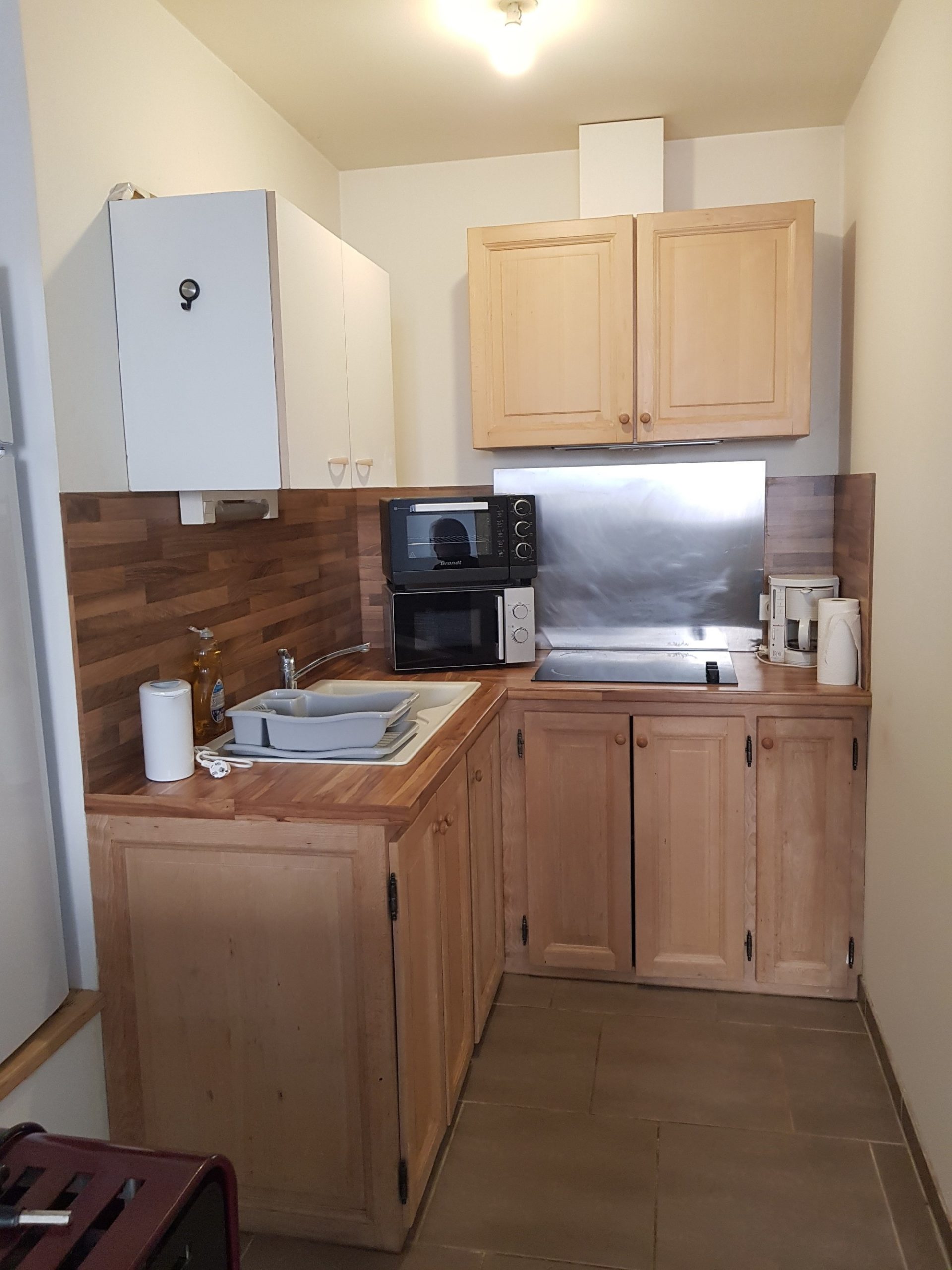 Il est composé d'une cuisine ouverte sur le séjour avec canapé , TV, poêle à pellets, une grande chambre avec 1 lit de 140 . Lit est fait à l'arrivée.