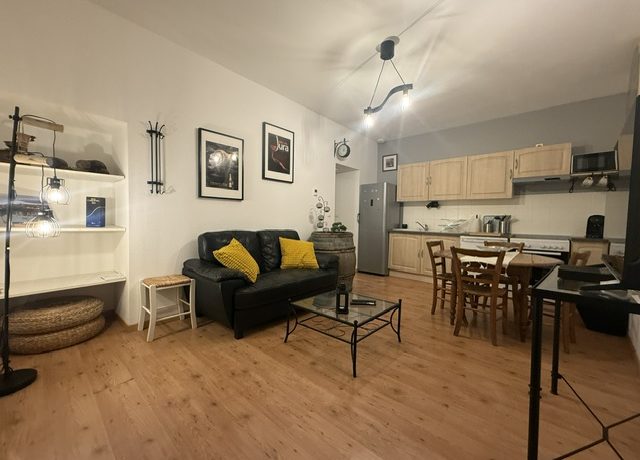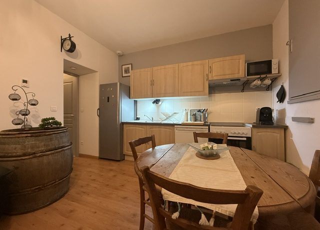 • Un séjour avec cuisine ouverte entièrement équipée : lave-vaisselle, cafetière, et tout le nécessaire pour cuisiner.