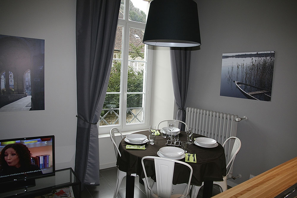 Cet appartement en rez-de-chaussée est aménagé dans une maison de maître comprenant d'autres locations de vacances (appartements Lilly et Iris), en plein cœur du centre-ville, dans une ruelle au calme. Il se compose d'une pièce de vie avec cuisine toute équipée, d'un coin salon avec TV, d'une chambre avec 1 lit double (160*200) et d'une salle d'eau avec douche et WC indépendant. Côté extérieur, une terrasse commune avec salon de jardin et barbecue vous permettra de profiter des beaux jours. Idéalement situé, vous pourrez accéder au centre-ville en quelques minutes à pied où vous trouverez tous les commerces, un casino, le centre thermal Therma Salina ainsi que la Grande Saline (classée au patrimoine mondial de l'UNESCO). De nombreux sites touristiques sont également à découvrir lors de votre séjour : le Mont Poupet qui domine la ville, Ornans, ville natale du peintre Courbet, le parc Vauban aventures Note : possibilité de se garer dans la ruelle où sur une place à 40 mètres - tarif spécial curiste : 880 euros pour 3 semaines de location. Parking à 50m.
