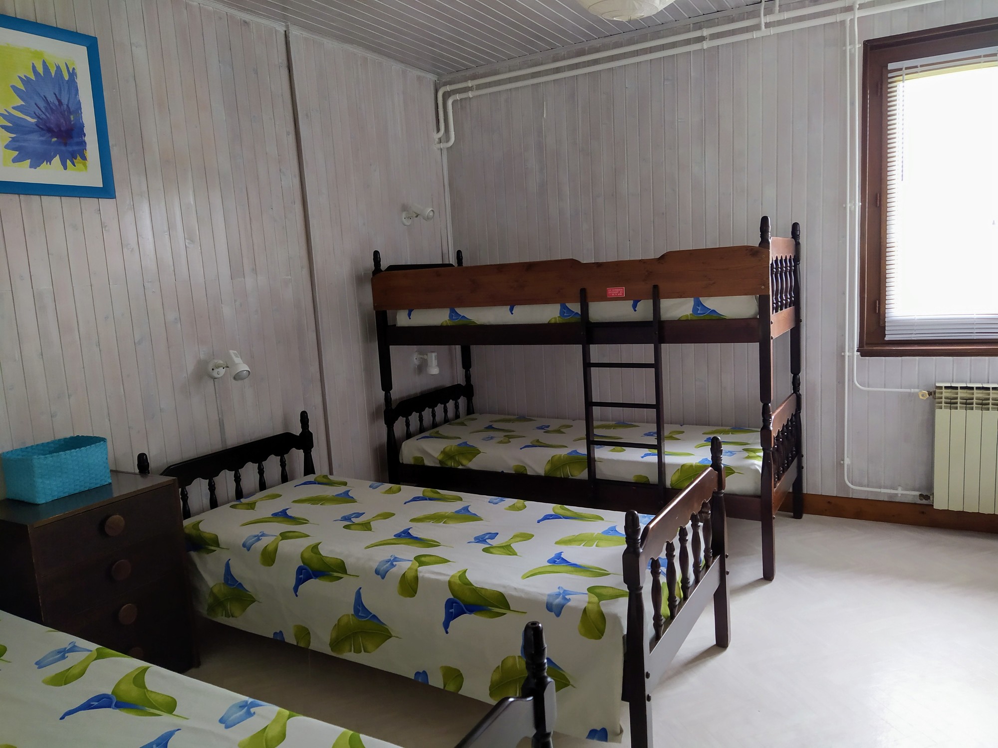 Situé dans une grande maison contenant 5 autres logements, cet appartement de 46m² au rez-de-chaussée est composé d’une pièce principale avec coin cuisine/repas, canapé lit clic-clac. Une première chambre avec lit de 140cm et une seconde avec lits superposés de 90cm et deux lits de 80cm. Salle d’eau et WC indépendant. Un accès extérieur sur grand terrain non clos complète le tout. Stationnement privée à la maison.