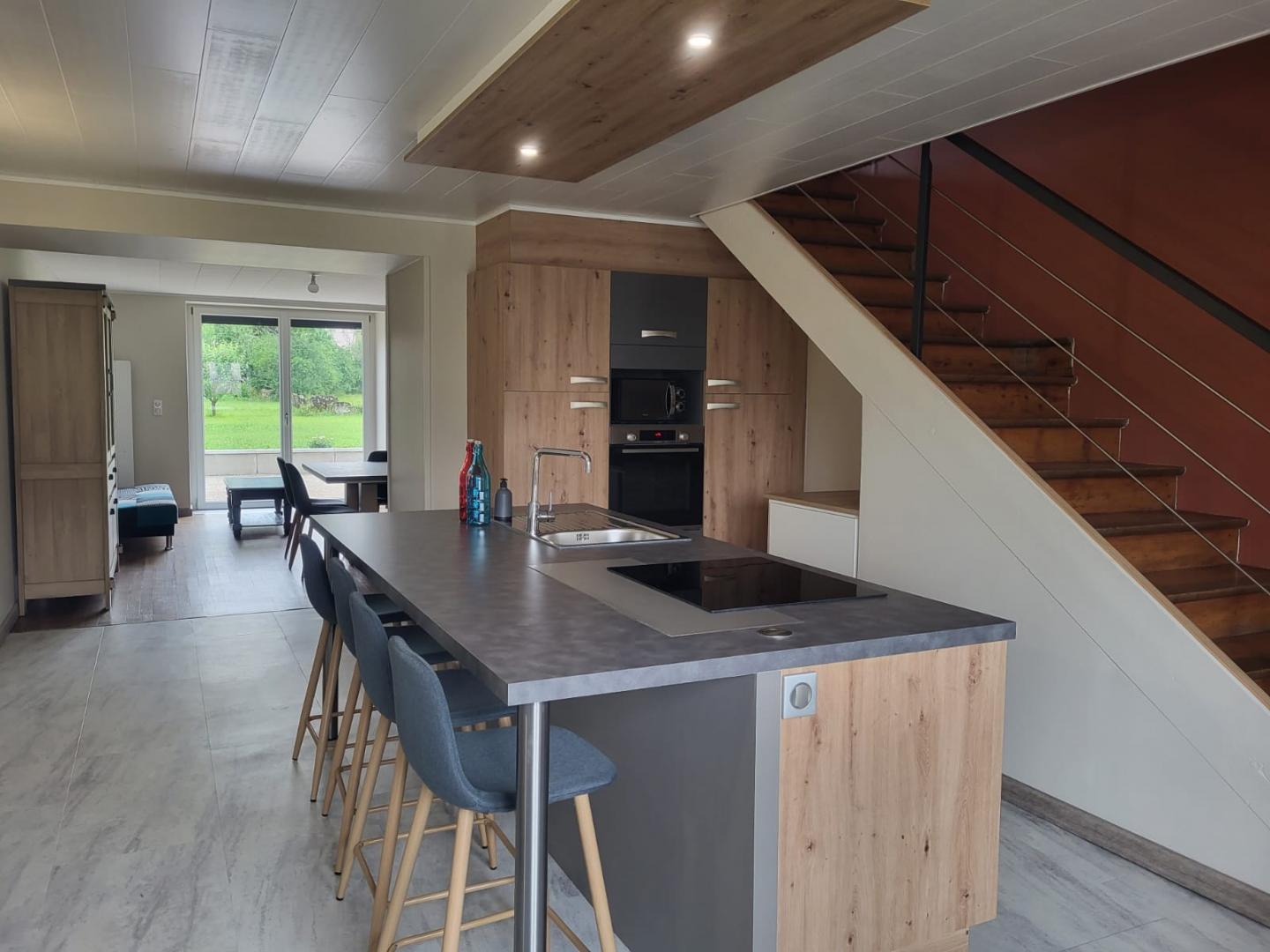Dans un petit village situé au coeur de la région des lacs, ce gîte mitoyen à un autre gîte, entièrement neuf est composé au rez de chaussée d'une pièce de vie avec cuisine toute équipée, d'un espace salon avec TV , d'un wc indépendant. A l'étage, 1 chambre avec 1 lit double en 140 et une chambre avec 2 lits 2 places, WC indépendant, salle d'eau avec cabine de douche. Vous pourrez profiter d'une terrasse privative avec salon de jardin et barbecue, et du terrain en commun avec l'autre gîte. Idéalement situé pour découvrir le lac de Chalain, de Clairvaux,, les cascades du Hérisson, la ville thermale de Lons-le-Saunier ou partir faire des randonnées dans la campagne environnante. Les draps et le linge de toilette ne sont pas fournis.
