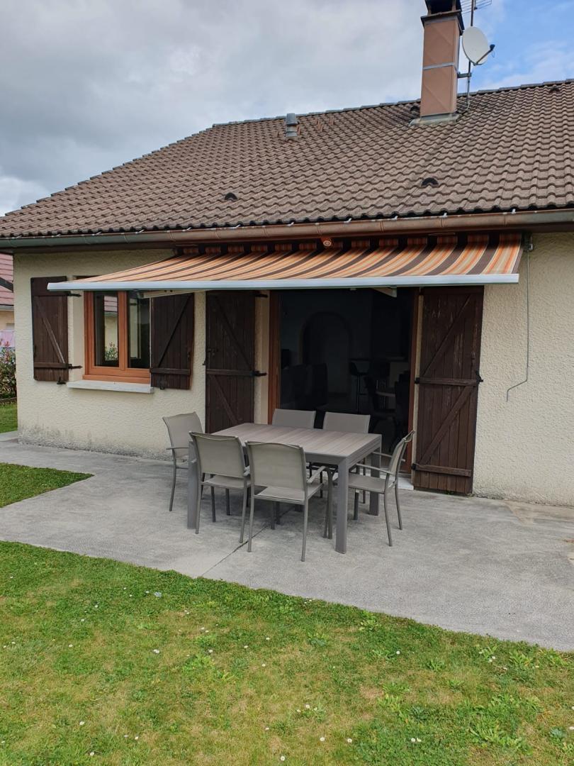 Cette maison indépendante de plain-pied, entièrement rénovée, se trouve dans un endroit calme à quelques minutes du centre-ville où vous trouverez tous les commerces. Elle se compose d'une pièce de vie avec cuisine toute équipée, coin salle à manger et espace salon avec canapé et TV, d'une chambre avec 1 lit double (160*200) et d'une seconde chambre avec 1 lit double (160*200) et de 2 lits simples (90*190), d'une salle d'eau avec douche et baignoire et d'un WC indépendant. Côté extérieur, vous pourrez profitez d'une terrasse avec salon de jardin, store, barbecue et transat. Garage. Idéalement situé pour découvrir les gorges de la Saine, la cascade de la Billaude, le château de Syam, la ville médiévale de Nozeroy, les cascades du Hérisson, le lac de Chalain...