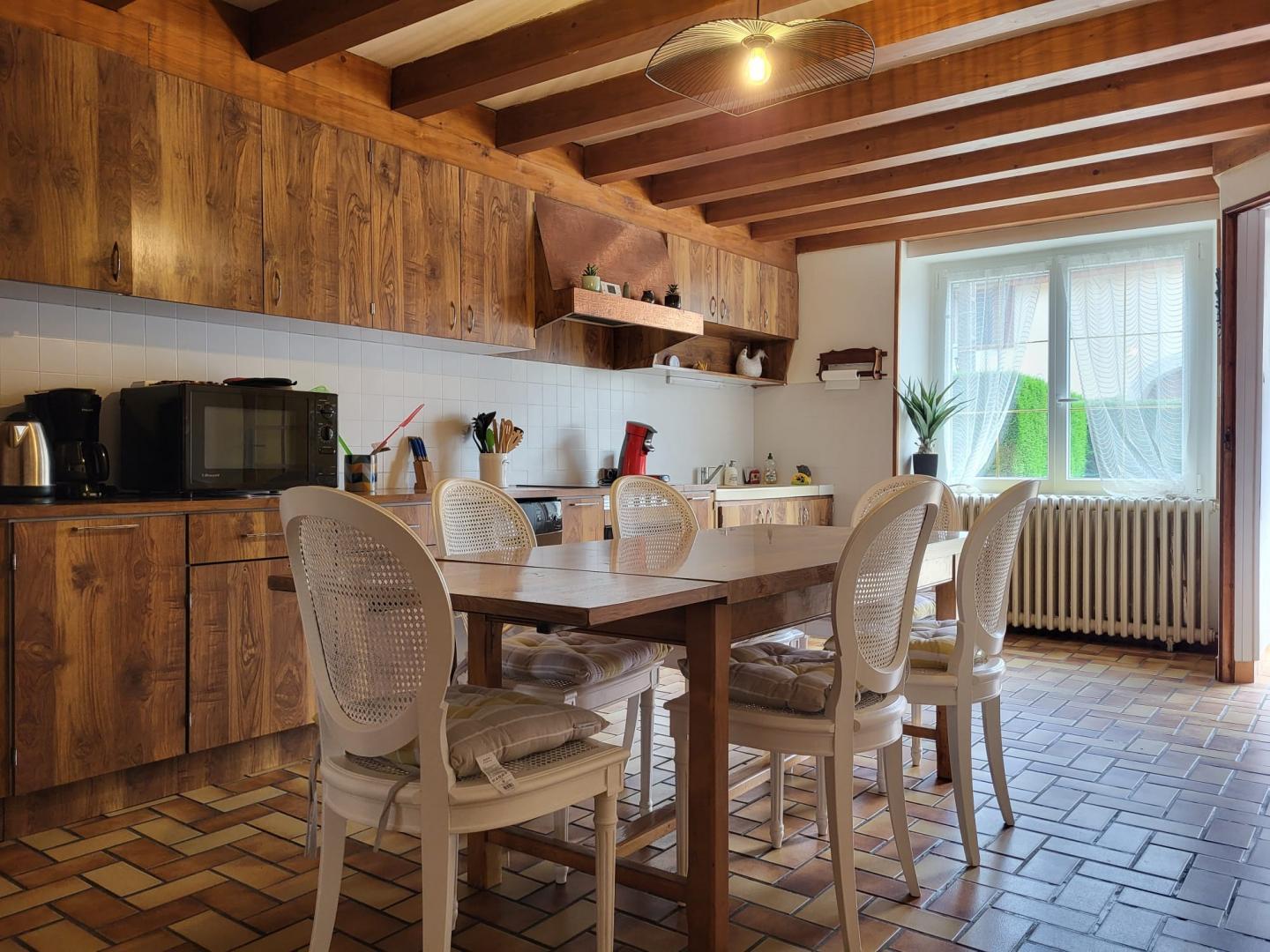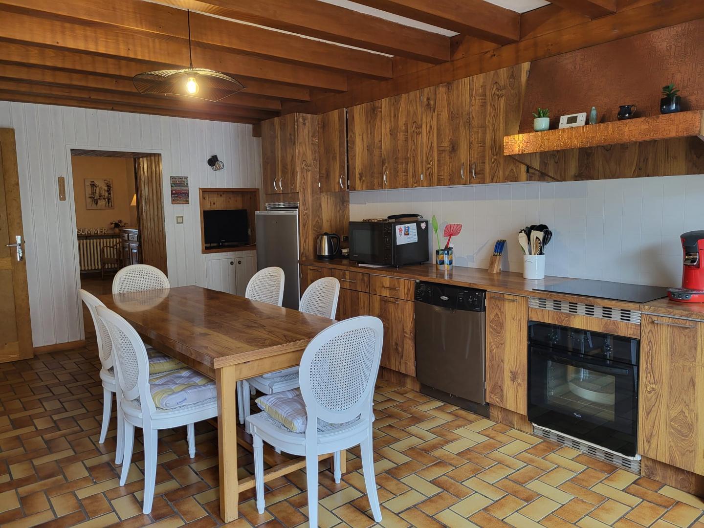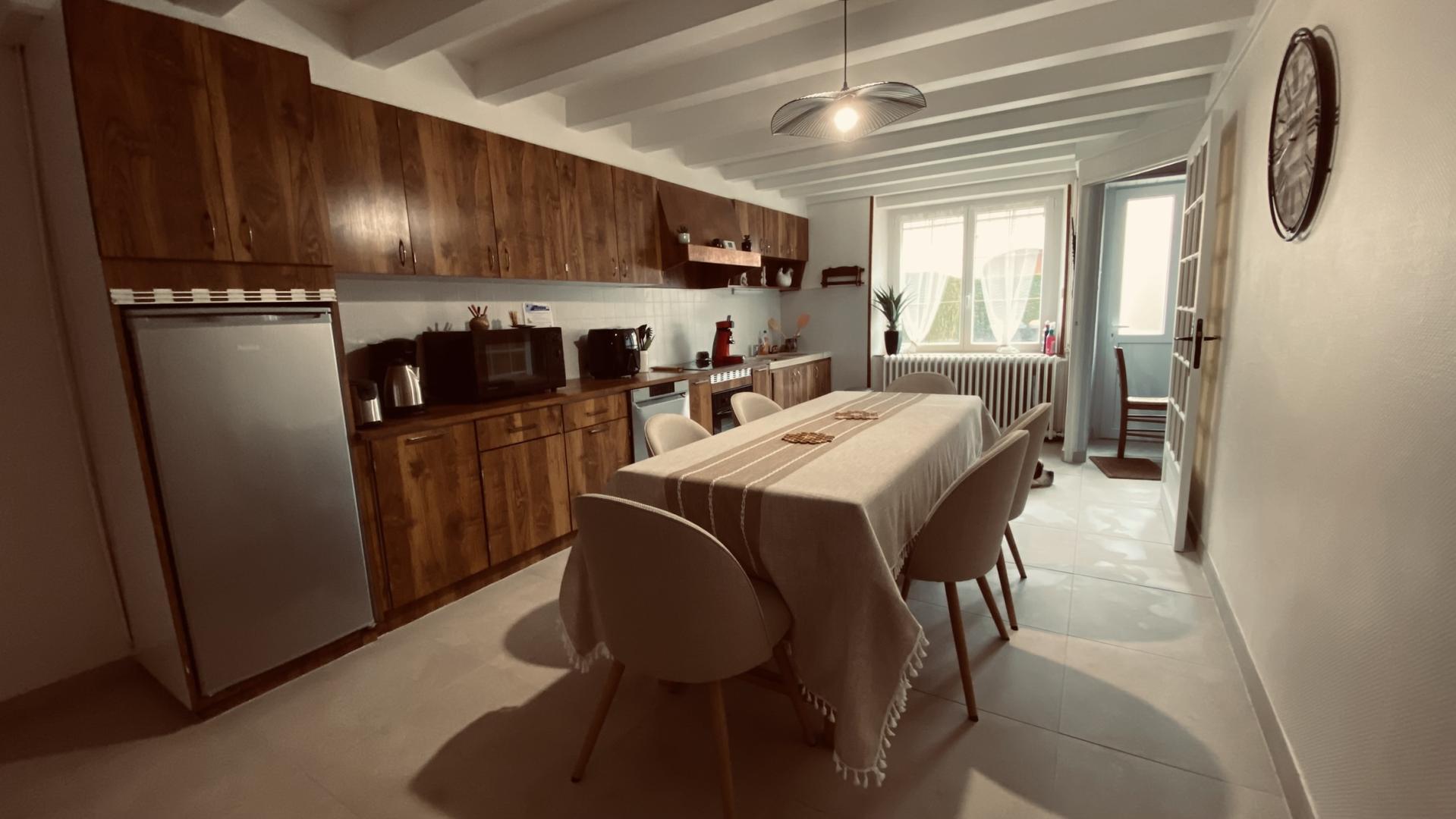 Cette maison mitoyenne vous apportera tout le confort nécessaire pour vous retrouver en famille ou entre amis. Au RDC, cuisine toute équipée, salle à manger, salon avec TV offrant un accès direct à la terrasse extérieur et au jardin, salle de bain avec baignoire et WC indépendant. A l'étage, 3 chambres : l'une avec 1 lit double (140*190) et les 2 autres avec respectivement l lit double (140*190) et 1 lit simple (90*190), salle d'eau avec cabine de douche te WC. Côté extérieur, vous pourrez profiter de la terrasse et du jardin aménagés avec salon de jardin, transats, barbecue et jeux pour enfants (petite cabane et toboggan). Idéalement situé, à 15 mns de la ville thermale de Lons le Saunier, vous pourrez également profiter des plages des lacs et de Clairvaux-les-lacs en une vingtaine de minutes.
