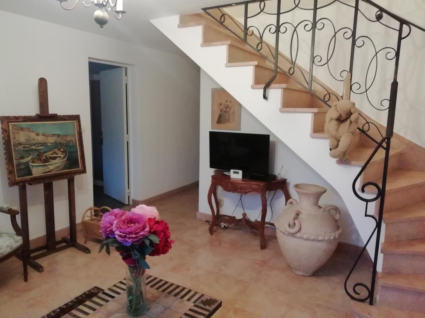 Au milieu d'un parc arboré, cet appartement de plain-pied situé au rez-de-chaussé de la maison de la propriétaire est un lieu idéal pour les les amoureux de calme et de repos. Il se compose d'un coin salon avec TV et lecteur DVD (mise à disposition d'un grand choix de films), d'une chambre double avec 1 lit 160*200, d'une cuisine toute équipée, d'une salle d'eau avec douche à l'italienne (accessible PMR) et d'un WC indépendant. Côté extérieur, vous pourrez profiter d'un salon de jardin, de chaises longues, le parc est partagé avec la propriétaire, parking privé sur place. Pour votre plus grand confort, les lits seront faits à votre arrivée et les linges de toilettes et de maison sont fournis. Possibilité sur demande d'accueillir un enfant de moins de 10 ans. Sur demande à la propriétaire pour un chien de petite et moyenne taille. Idéalement situé, au cœur du vignoble, vous pourrez partir à la découverte de Baume les Messieurs, site clunisien, également connu pour ses reculées et sa cascade des tufs, de Château-Chalon, classé parmi les plus beaux villages de France. De nombreux caveaux et fromagerie vous permettront de découvrir nos produits locaux : vin Jaune, Comté, Morbier... Vous trouverez dans le village de nombreux caveaux de dégustation de vins du Jura ainsi qu'un bistrot. Ce logement est idéal pour les pêcheurs (pêche de la truite dans la rivière de la Seille à 250 mètres), les randonneurs, les curistes (centre thermal Valvital de Lons-le-Saunier situé à 15 mns), et les épicuriens. Note : Propriété avec chienne calme et pacifique. Parking gratuit avec contrainte à la gestion du portail: à chaque entrée / sortie , le portail devra être refermé par le client.. A défaut , parking gratuit à 500 m vers la rivière. La chienne de la propriétaire ,NALA, est dans une zone clôturée. Pour les vacanciers étrangers, dépôt de caution par empreinte bancaire obligatoire.