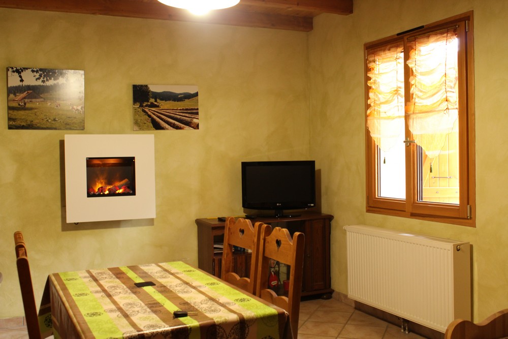 Au coeur du village, ancienne ferme entièrement rénovée composée de plusieurs gîtes. Au RDC, local à skis ou à vélos. A l'étage, cuisine équipée, séjour-salon, CH1: 1 lit 2 pl, CH2: 2 lits 1 pl, salle d'eau (sèche-cheveux), wc indépendants. Balcon offrant une jolie vue sur le village. Terrain attenant non clos, salon de jardin et barbecue. Cheminée électrique. Interphone et digicode. ACCES WIFI SECURISE GRATUIT. Parking privé sur place et volets dans les chambres.
