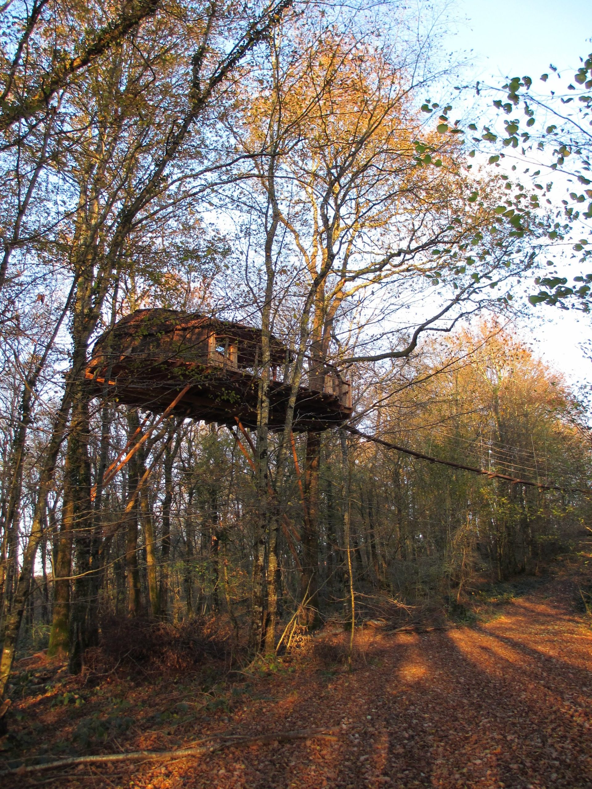 Les 6 cabanes ont chacune leur particularité, plus ou moins hautes avec différents accès par des échelles, des escaliers et des ponts de singes. Elles peuvent accueillir de 2 à 6 personnes et offrent des instants hors du temps et cachées au cœur de la forêt perchées jusqu’à 10 mètres de hauteur.
