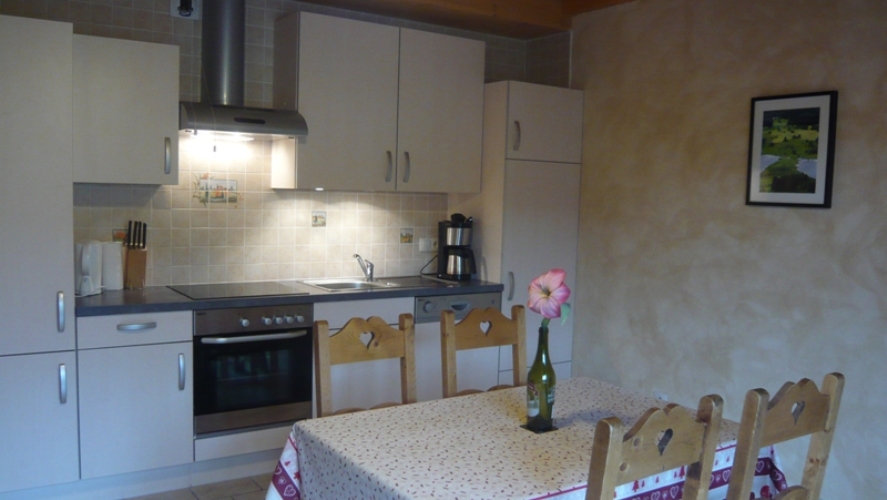 Au coeur du village, ancienne ferme entièrement rénovée composée de plusieurs gîtes. Au RDC, local à skis ou à vélos. A l'étage, belle cuisine équipée ouverte sur séjour-salon, CH1: 1 lit 2 pl, CH2: 2 lits 1 pl, salle d'eau avec douche (sèche-cheveux), wc indépendant. Balcon offrant une jolie vue sur les pistes. Terrain attenant non clos, salon de jardin et barbecue. Interphone et digicode. ACCES WIFI SECURISE GRATUIT. Tarif possible pour 2 personnes : se renseigner auprès des propriétaires. Parking privé sur place et volets dans les chambres.