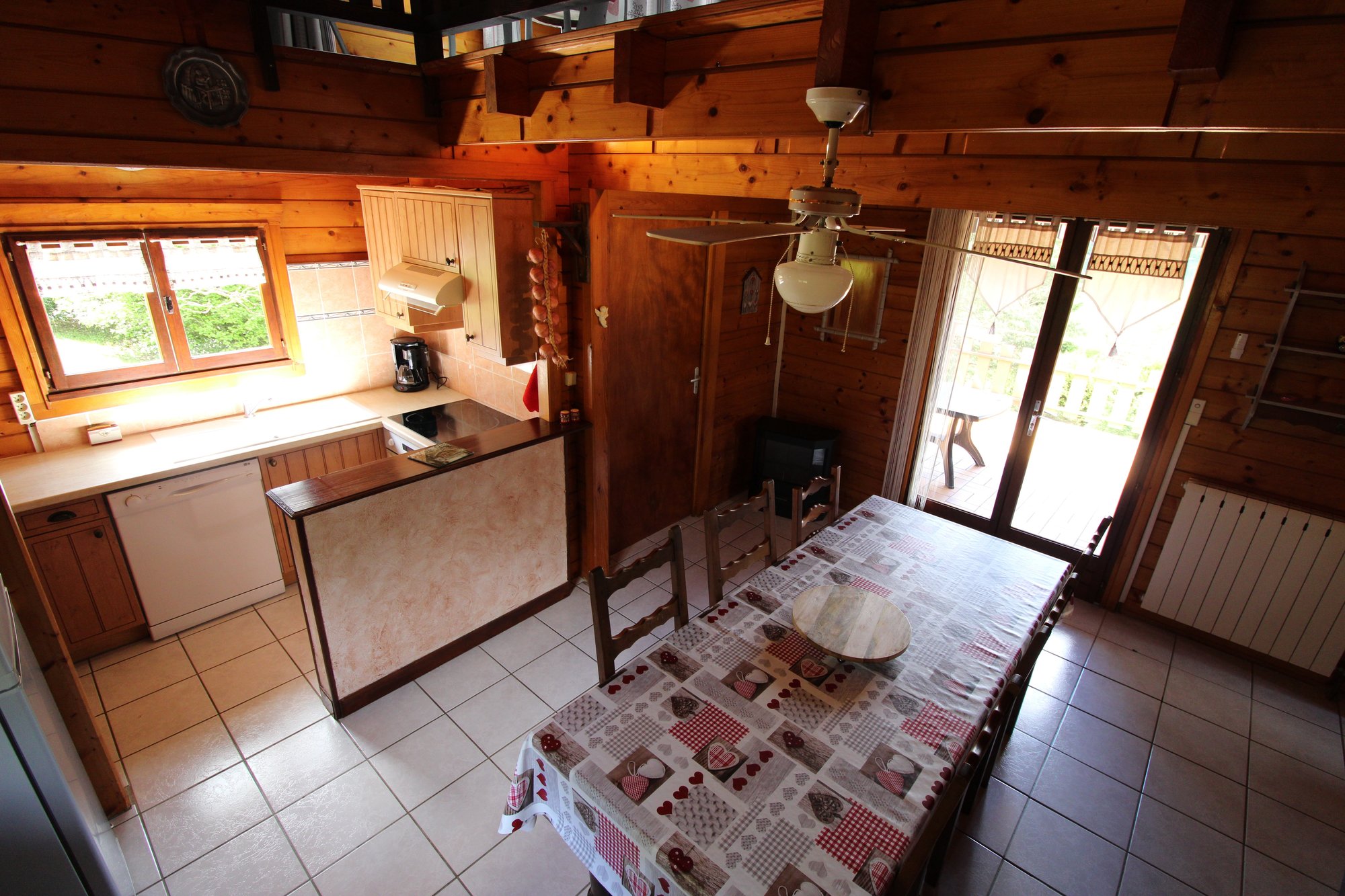 A Barésia-sur-l'Ain ( 39130 ) loue chalet de vacance avec grande terrasse de 30 m² vue sur le lac.