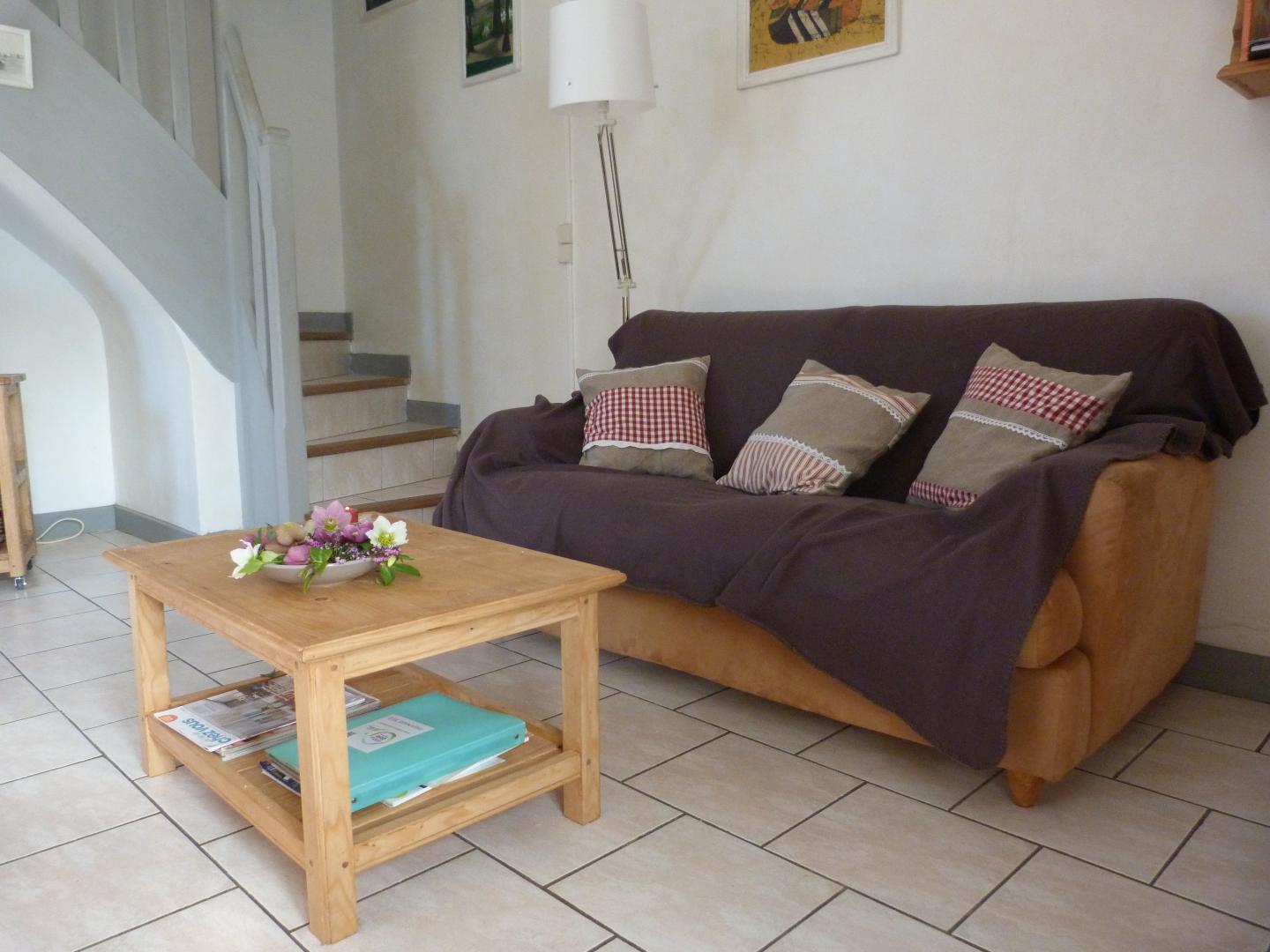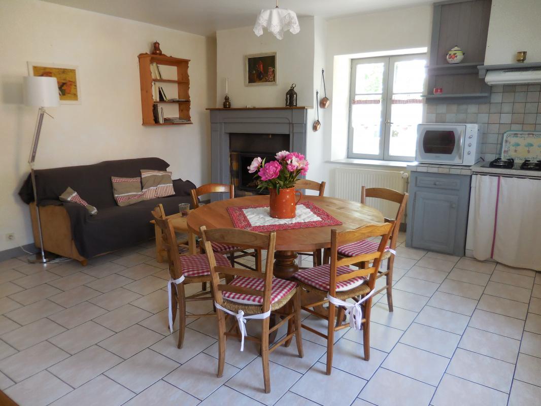 Le gîte se situe dans une partie d'une ancienne ferme rénovée. L'ambiance campargnarde qui s'en dégage cherche à recréer l'atmosphère des "Contes du Chat Perché" de Marcel Aymé. Cuisine intégrée toute équipée (congélateur), séjour, ch1: 1 lit 2 pl, ch2: 1 lit 2 pl et 1 lit 1 pl, 2 lits bébé, salle d'eau, terrain attenant semi- clos, cour, barbecue, salon de jardin. Vous pourrez "flaner" dans le magnifique jardin des propriétaires qui se feront une joie de vous le faire découvrir. Chauffage central. Toutes charges comprises été/hiver. Sur demande, en option, forfait ménage: 70€ et location de draps: 10€/paire. Connexion internet gratuite.