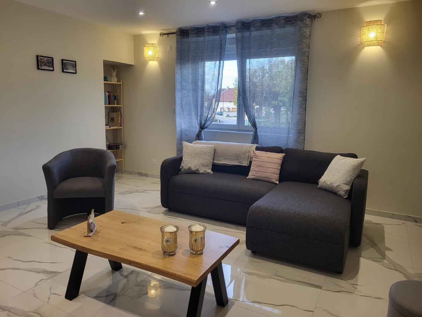 Cette maison mitoyenne, entièrement rénovée vous apportera tout le confort nécessaire pour passer un agréable séjour. Elle se compose au RDC d'une cuisine toute équipée avec espace salle à manger, d'un salon avec canapé convertible (possibilité d'accueillir 1 ou 2 personnes sur demande : +10 euros par personne et par jour) et TV, d'une salle d'eau avec WC, au 1er étage, d'une chambre avec 1 lit double, et d'une salle de bain avec baignoire et WC et au second étage d'une chambre avec 1 lit double et 2 lits simples. Côté extérieur, vous trouverez une terrasse avec un salon de jardin et un barbecue. Idéalement situé au coeur de la région des lacs, vous pourrez rejoindre en moins de 10 minutes le lac de Vouglans (plage de la Mercantine) ou le lac de Clairvaux-les-Lacs. Les amoureux des loisirs de pleine nature pourront profiter des nombreux sentiers pédestre et cyclotourisme, et les pistes de ski de fond et raquette se trouvent à une quinzaine de minutes. Les propriétaires, Monique et Didier, se feront un plaisir de vous conseiller sur les sites touristiques et les loisirs à découvrir à proximité.Possibilité de garer deux véhicules sous la terrasse du propriétaire + un emplacement à coté. Local fermé pour vélos et 2 motos. Seuls les chats et les chiens sont acceptés merci de votre compréhension.