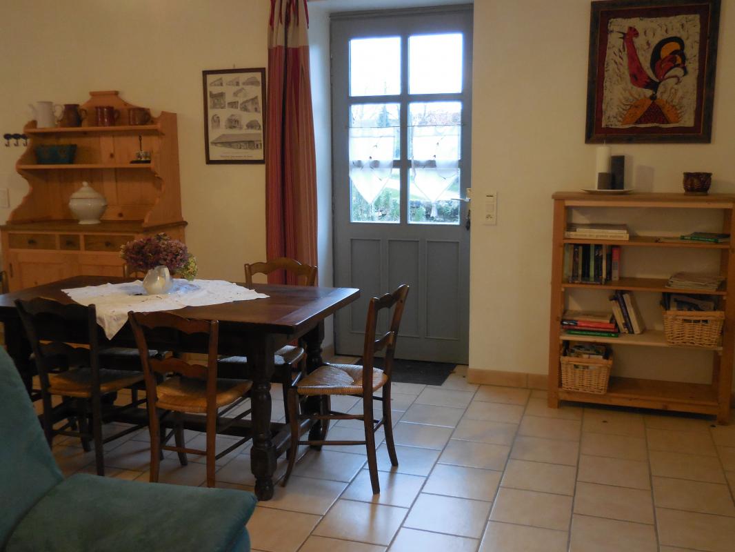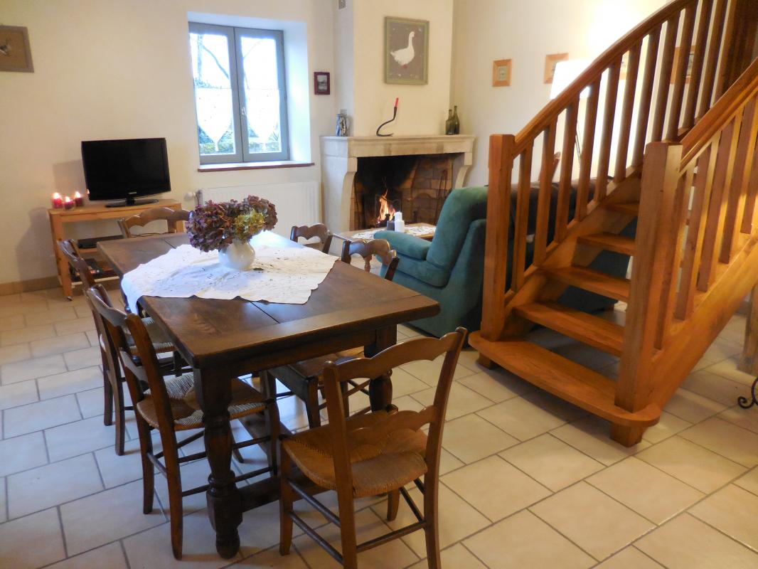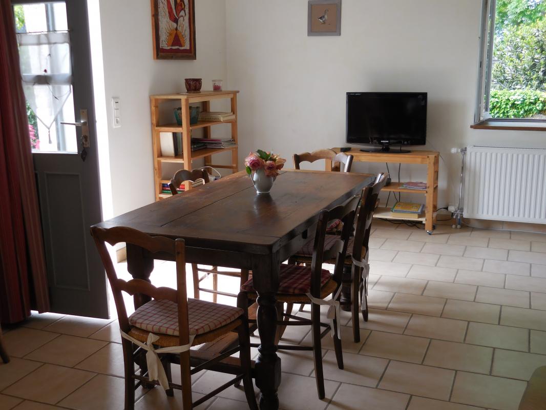 Le gîte se situe dans une partie d'une ancienne ferme rénovée. L'ambiance campagnarde qui s'en dégage cherche à recréer l'atmosphère des "Contes du Chat Perché" de Marcel Aymé. Au rez de chaussée: séjour-salon, coin-cuisine intégré, micro-ondes, à l'étage: ch1: 1 lit 2 pl, 1 lit 1 place, salle d'eau, ch2: 2 lits 1 pl,salle d'eau, 1 lit bébé, buanderie, terrain attenant semi- clos, cour, barbecue, salon de jardin. Vous pourrez "flâner" dans le magnifique jardin des propriétaires qui se feront une joie de vous le faire découvrir. Chauffage central. Toutes charges comprises. Connexion internet gratuite.