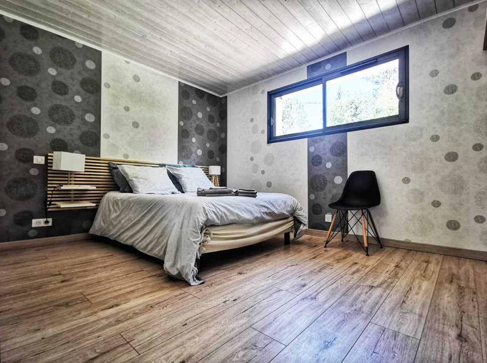 Idéalement située en plein coeur de la Région des Lacs, à seulement 300m à pied du lac de Chalain, venez découvrir cette jolie maison indépendante de plain-pied aménagée dans une impasse calme du village de Doucier. Belle pièce à vivre composée d'une cuisine entièrement équipée, et d'un salon avec canapé convertible (possibilité de venir à 6 sur demande), télévision écran plat et poêle à granulé. Deux chambres, l'une avec un lit double de 160x200cm et la seconde avec un lit double de 160*200. Salle d'eau avec douche à l'italienne, wc indépendants. Grande terrasse pour profiter au mieux du calme et de la nature environnante, équipée à la belle saison de salon de jardin et barbecue, cour et terrain attenant non clos. Abri voiture. Etang (peu profond) non sécurisé à proximité, sur le terrain de la propriétaire. N'attendez plus pour réserver votre séjour ! Ménage inclus dans le tarif