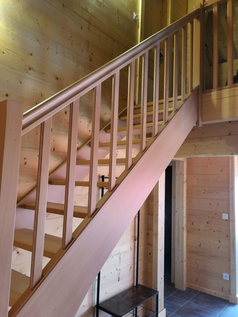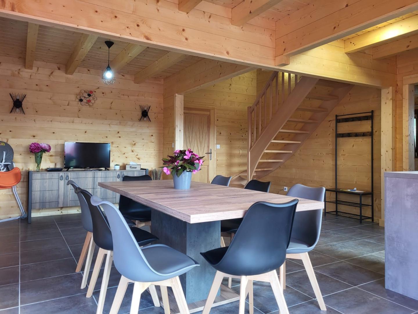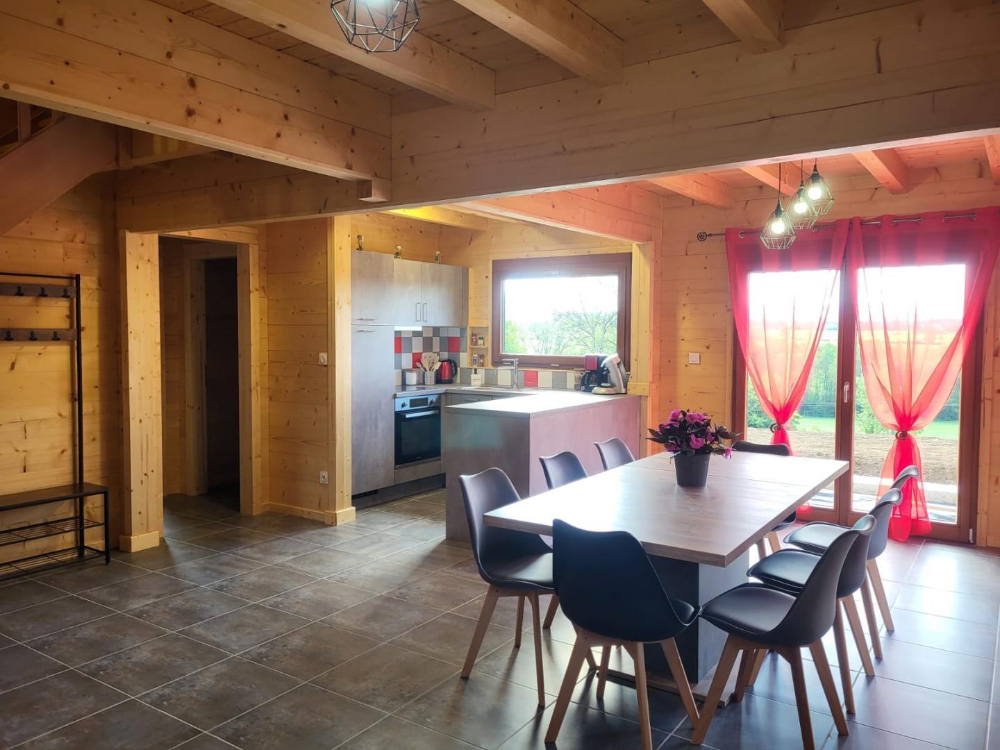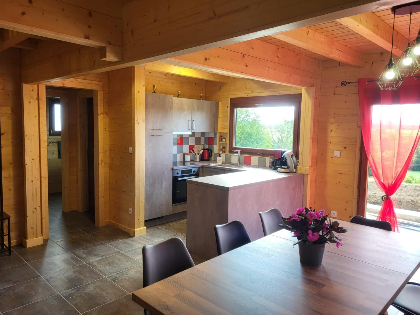 Idéalement situé à proximité du Lac de Chalain, des Cascades du Hérisson et de nombreux sentiers de randonnées, ce très joli chalet vous ouvre ses portes pour un séjour reposant et ressourçant ! Au rez-de-chaussée vous pourrez profiter d'une belle pièce à vivre composée d'un séjour et d'un coin cuisine équipé, d'une salle d'eau avec une douche à l'italienne, d'un wc indépendant, et d'une chambre avec 1 lit 2 places (140x190). A l'étage, sur la mezzanine un grand espace salon avec un canapé d'angle et fauteuils, une chambre avec un lit 2 places (140x190) et 2 lits 1 place (90x190). Buanderie avec lave-linge, congélateur et possibilité de rangements supplémentaires (vélos...). La terrasse pourvue d'un salon de jardin et barbecue vous offre une magnifique vue sur la campagne environnante. Terrain attenant non clos. A découvrir absolument! Parking privé sur place et volets dans les chambres.