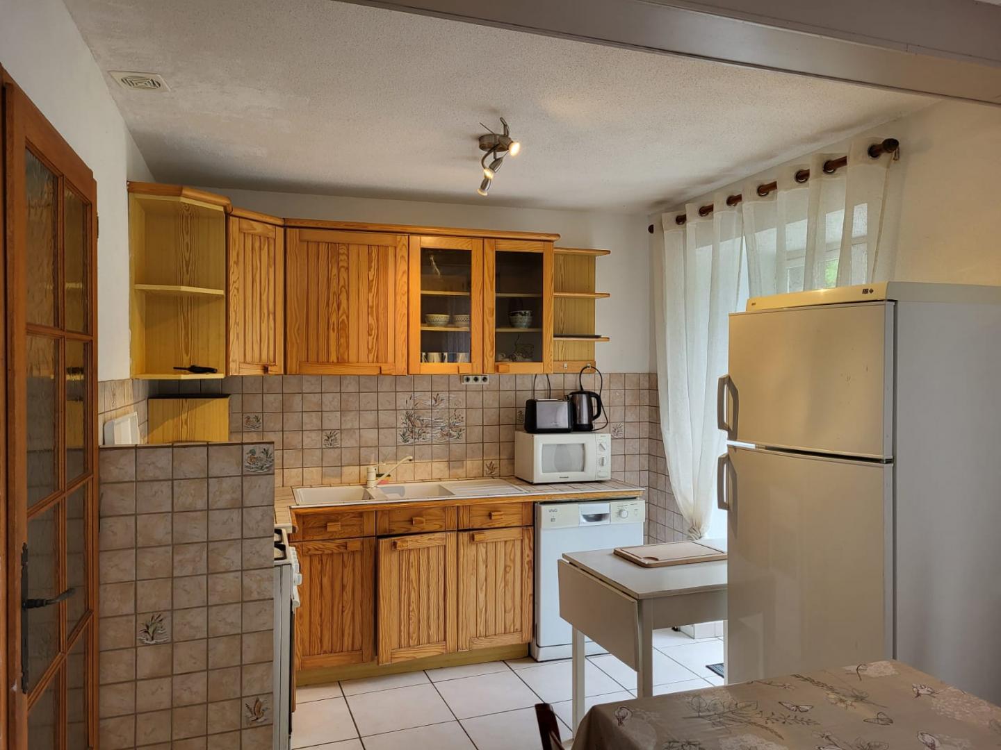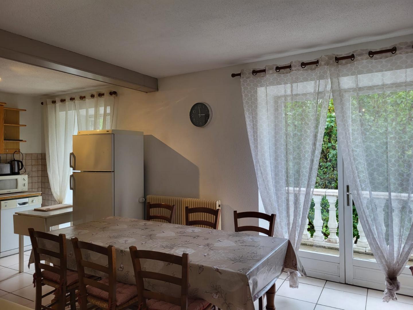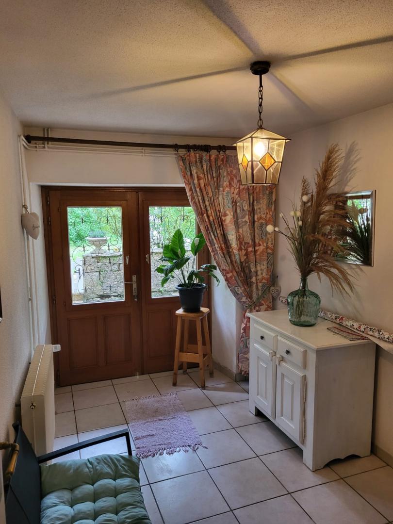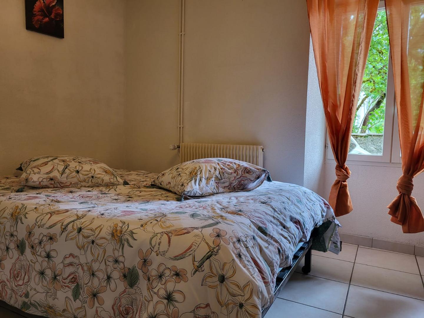 Nichée dans un écrin de verdure, cette maison mitoyenne à celle de la propriétaire se compose au RDC d'une chambre avec 1 lit double (140*190) et TV, d'une salle d'eau avec douche et d'un WC indépendant. A l'étage, pièce de vie avec cuisine toute équipée, coin salle à manger, séjour avec TV, une chambre avec 1 lit double (140*190) et une chambre avec 1 lit double (140*190) et 1 lit simple, salle d'eau avec douche et WC indépendant. Balcon, cour mitoyenne non close, jardin privé non clos, salon de jardin, barbecue. Véritable petit havre de paix, idéal pour le repos.