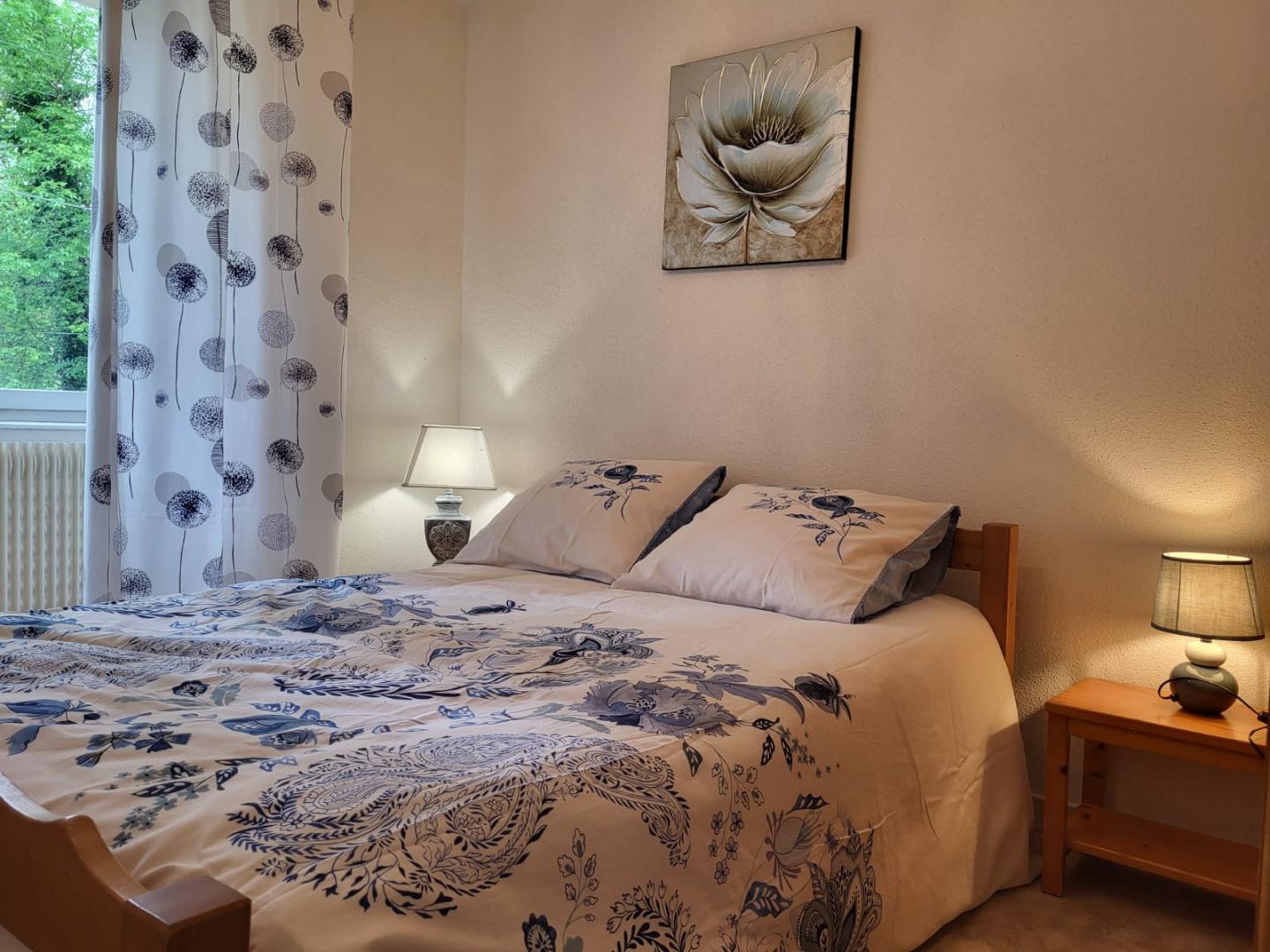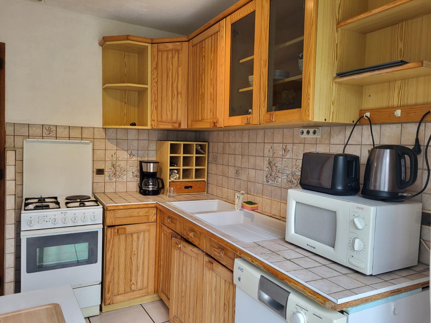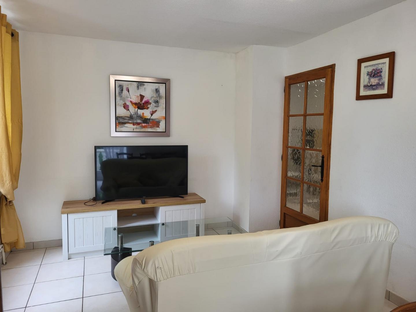 Nichée dans un écrin de verdure, cette maison mitoyenne à celle de la propriétaire se compose au RDC d'une chambre avec 1 lit double (140*190) et TV, d'une salle d'eau avec douche et d'un WC indépendant. A l'étage, pièce de vie avec cuisine toute équipée, coin salle à manger, séjour avec TV, une chambre avec 1 lit double (140*190) et une chambre avec 1 lit double (140*190) et 1 lit simple, salle d'eau avec douche et WC indépendant. Balcon, cour mitoyenne non close, jardin privé non clos, salon de jardin, barbecue. Véritable petit havre de paix, idéal pour le repos.