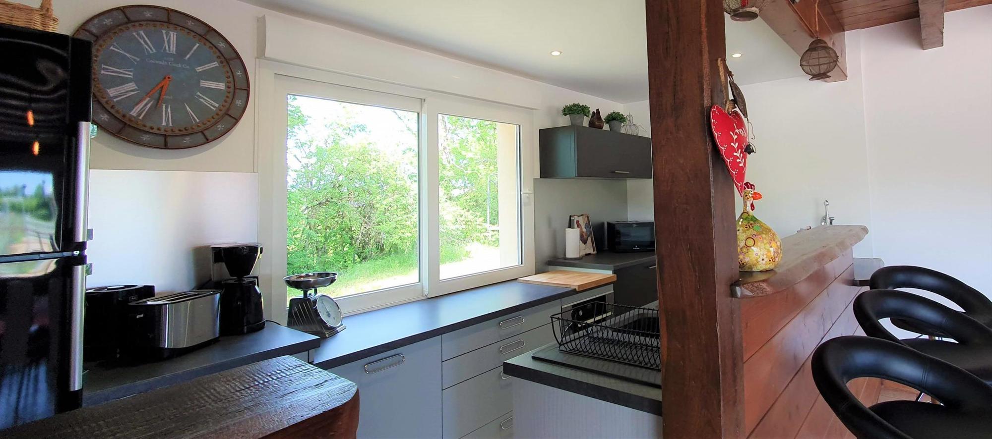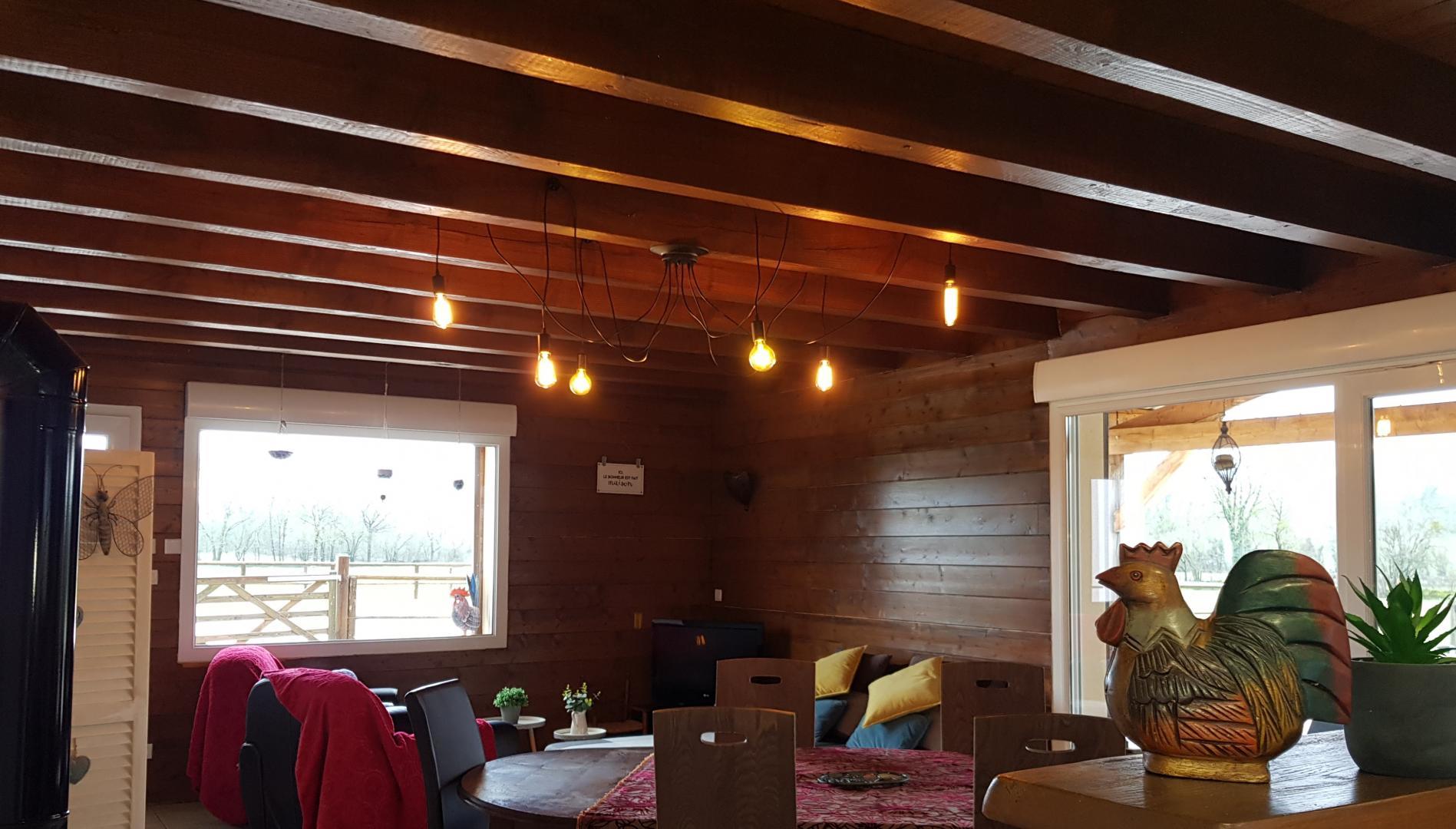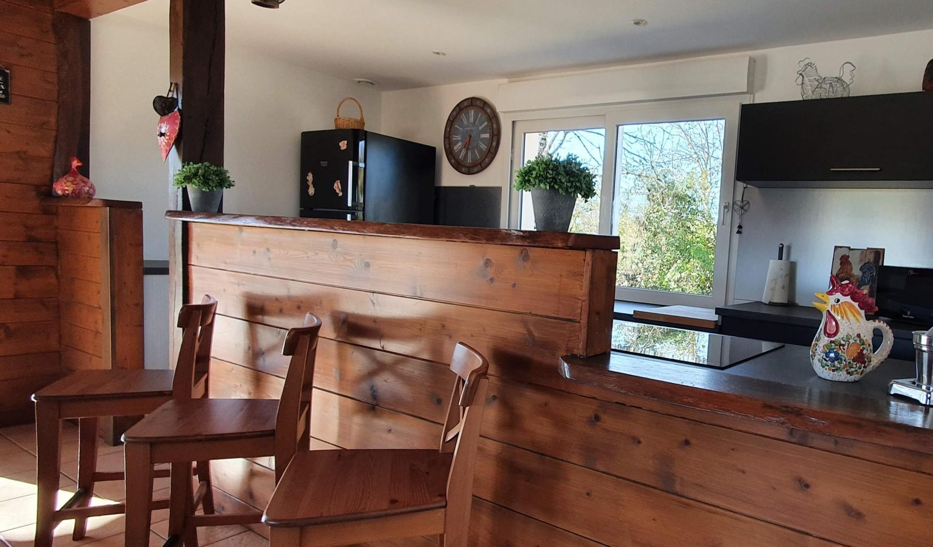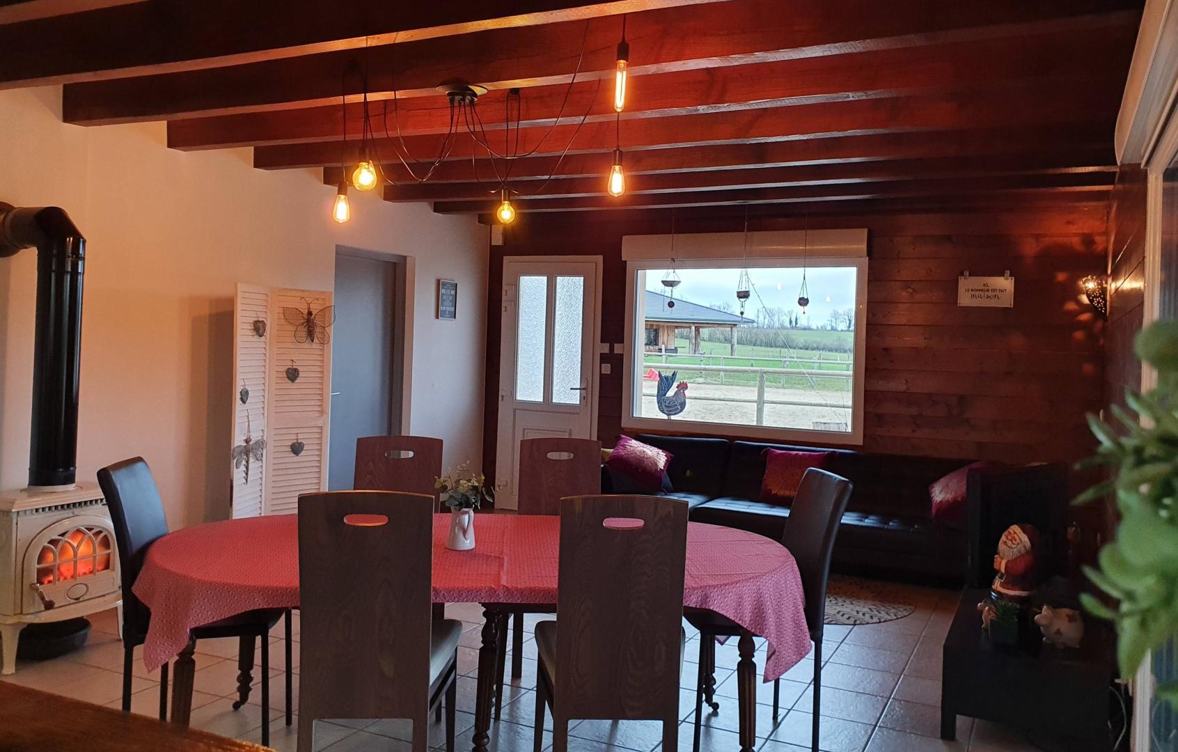 Le gîte "LA BOISERIE" vous accueille au cœur d'un domaine équestre de 9 hectares, dans un cadre naturel exceptionnel et où les animaux de la ferme (chevaux, poneys, chèvres, lamas...) évoluent en toute quiétude et pour le bonheur des amoureux de la nature. Aménagée avec goût et spacieuse (capacité d'accueil jusqu'à 4 personnes), vous profiterez d'un réel confort grâce aux installations mises à votre disposition. Ce logement est composé d'une grande pièce à vivre où se trouvent une partie cuisine entièrement équipée, un espace repas et un salon avec TV et canapé convertible ; 2 chambres l'une avec 2 lits de 90 et l'autre avec un lit de 160 ; une salle d'eau avec douche à l'italienne (toilettes séparées) et terrasse spacieuse. Notre gîte se situe entre monts et vallées, ce qui vous offre le loisir découvrir des sites nommés “plus beaux villages de France” (Château-Chalon, Baume-les-Messieurs), des villages pittoresques ( Poligny ville du Comté ; Arbois – son musée et ses vins ; Salins-les-Bains – ses thermes et fortifications ; Dole – la Venise Jurassienne ; Arc-et-Senans et ses salines classées au Patrimoine Mondial de l'UNESCO...), la région des lacs (Chalai..) et des cascades (du Hérisson, des Tufs...) Possibilité de pratiquer diverses activités : randonnée à pieds, vélo, VTT... (départ depuis le gîte sur des pistes IGN), balades à poneys (activités proposées au sein de notre domaine dans le cadre de notre activité de "Ferme Équestre Élevage Juan"), piscine et thermes, lacs, visite de sites touristiques et culturels... ou tout simplement profiter de notre domaine pour vous reposer sur le temps d'un week-end ou durant quelques jours de vacances Animal de compagnie acceptés gratuitement et dans le respect de la charte d'accueil des animaux de Gîte de France (un par logement – accueil sup avec accord des propriétaires). Une caution de 300 € par animal vous sera demandée. Pour charge de véhicule électrique un surcout sera demandé (voir avec la propriétaire)