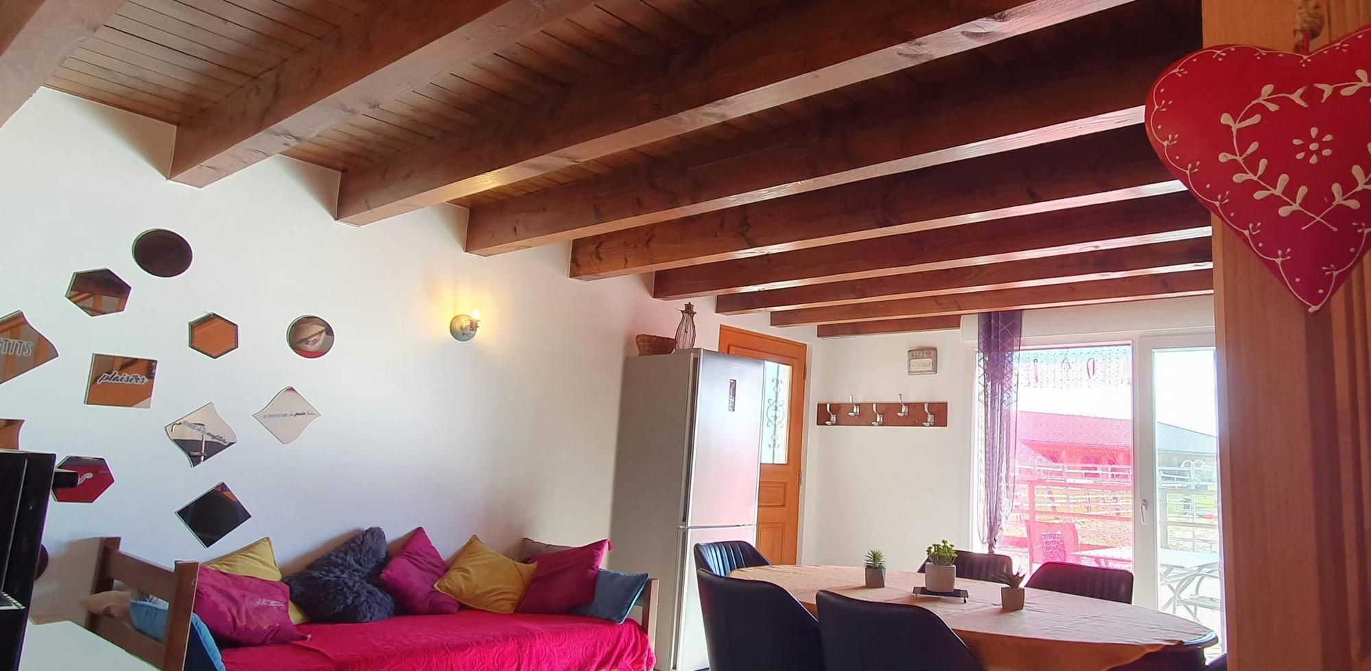 Le gîte "LA LOGE" vous accueille au cœur d'un domaine équestre de 9 hectares, dans un cadre naturel exceptionnel et où les animaux de la ferme (chevaux, poneys, chèvres, lamas...) évoluent en toute quiétude et pour le bonheur des amoureux de la nature. Aménagée avec goût et spacieuse, vous profiterez d'un réel confort grâce aux installations mises à votre disposition. Au RDC vous trouverez une pièce de vie avec cuisine équipée et accès sur une petite terrasse, une 1ère chambre avec un lit de 160 ainsi qu'une salle d'eau avec douche à l'italienne et WC. A l'étage se trouvent deux pièces en enfilade : un salon avec TV, canapé convertible et un lit de 90, puis une 2ème chambre qui est climatisée et avec un lit de 140. Notre gîte se situe entre monts et vallées, ce qui vous offre le loisir découvrir des sites nommés “plus beaux villages de France” (Château-Chalon, Baume-les-Messieurs), des villages pittoresques ( Poligny ville du Comté ; Arbois – son musée et ses vins ; Salins-les-Bains – ses thermes et fortifications ; Dole – la Venise Jurassienne ; Arc-et-Senans et ses salines classées au Patrimoine Mondial de l'UNESCO...), la région des lacs (Chalain...) et des cascades (du Hérisson, des Tufs...) Possibilité de pratiquer diverses activités : randonnée à pieds, vélo, VTT... (départ depuis le gîte sur des pistes IGN), balades à poneys (activités proposées au sein de notre domaine dans le cadre de notre activité de "Ferme Équestre Élevage Juan"), piscine et thermes, lacs, visite de sites touristiques et culturels... ou tout simplement profiter de notre domaine pour vous reposer sur le temps d'un week-end ou durant quelques jours de vacances Animal de compagnie acceptés gratuitement et dans le respect de la charte d'accueil des animaux de Gîte de France (un par logement – accueil sup avec accord des propriétaires). Une caution de 300 € par animal vous sera demandée. Pour charge de véhicule électrique un surcout sera demandé (voir avec la propriétaire)