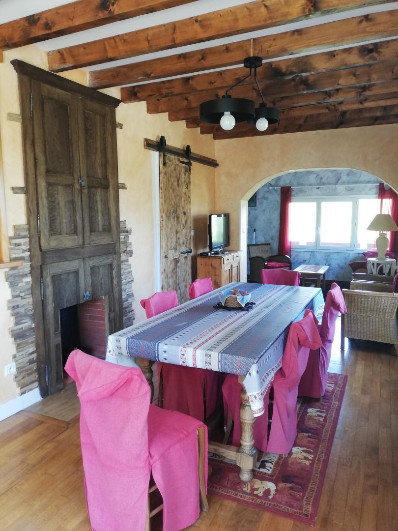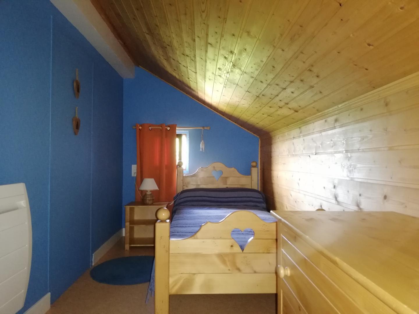 Maison indépendante avec vue sur le lac de Chalain. Accès a la plage gratuit et à pied. Située dans une impasse et dans un environnement calme et reposant. Au rez de chaussée séjour-salon, coin-cuisine équipée, canapé, salle d'eau. A l'étage: coin nuit avec 2 lit 1 pl, ch2: 1 lit 2 pl (160X200), ch3: 1 lit 1pl, grande terrasse. Lecteur DVD, mini-four. Table de ping-pong. Charges non comprises (sauf juillet/août). chauffage électrique et cheminée d'appoint en pierres avec Insert. Terrain clos et arboré, salon de jardin, barbecue, balançoire. Équipement bébé sur demande.