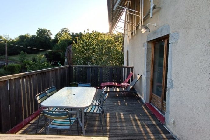 Ce gite mitoyen à la maison des propriétaires. est aménagé au 1er étage avec des matériaux sains et écologiques, vous pourrez disposer d'une grande pièce à vivre composée d'un espace cuisine équipée, d'un salon. Au 1er étage surélevé : 3 chambres : l'une avec 1 lit 2 pl, l'autre avec 1 lit 2 pl et douche, la 3ème chambre se compose de 3 lits 1 pl. Salle d'eau, toilettes sèches. Eau chaude solaire et chauffage aux granulés de bois. Terrasse en balcon avec salon de jardin et barbecue. Terrain attenant non clos. Pour votre plus grand confort les draps et serviettes de toilette sont fournis. Idéalement situé pour découvrir la ville thermale de Lons le Saunier, le lac de Vouglans avec la plage du Surchauffant (aménagée et surveillée en été) et pour les amoureux de la randonnée pédestre ou cyclo