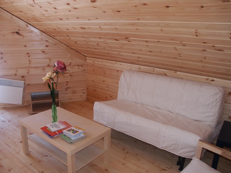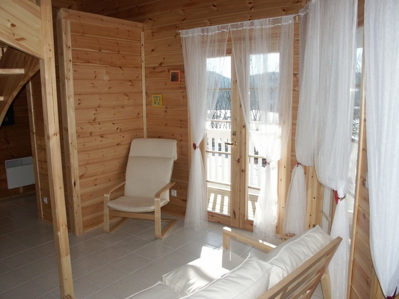 Dans un cadre naturel, chalet bois (EPICEA) entièrement neuf et indépendant, situé sur un terrain comportant 4 autres gîtes. Cuisine intégrée toute équipée (micro-ondes), salon-séjour (poêle à bois) avec de grandes baies vitrées ouvrant sur la terrasse, salle d'eau (douche italienne et sauna finlandais pour 4 pers), ch1 1 lit 2 pl, buanderie (sèche-linge). A l'étage: salon en mezzanine (canapé-lit 2 pl), ch2:1 lit 2 pl+2 lits 1 pl superposés. Chauffage électrique et poêle à bois. Terrain attenant non clos, salon de jardin, barbecue. Option ménage à 60 €. Piscine, tennis et terrain de jeux municipal à 100 mètres.