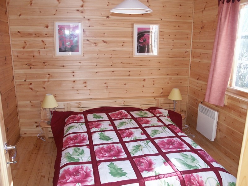 Dans un cadre naturel, chalet bois (ERABLE) entièrement neuf et indépendant, situé sur un terrain comportant 4 autres gîtes. Cuisine intégrée toute équipée (micro-ondes), salon-séjour (poêle à bois) avec de grandes baies vitrées ouvrant sur la terrasse, salle d'eau (douche italienne et sauna finlandais pour 4 pers), ch1 1 lit 2 pl, buanderie (sèche linge). A l'étage: salon en mezzanine (canapé-lit 2 pl), ch2:1 lit 2 pl + 2lits 1 pl superposés. chauffage électrique et poele à bois. Terrain attenant non clos, salon de jardin, barbecue, option ménage à 60E. Piscine, tennis et terrain de jeux municipal à 100m.