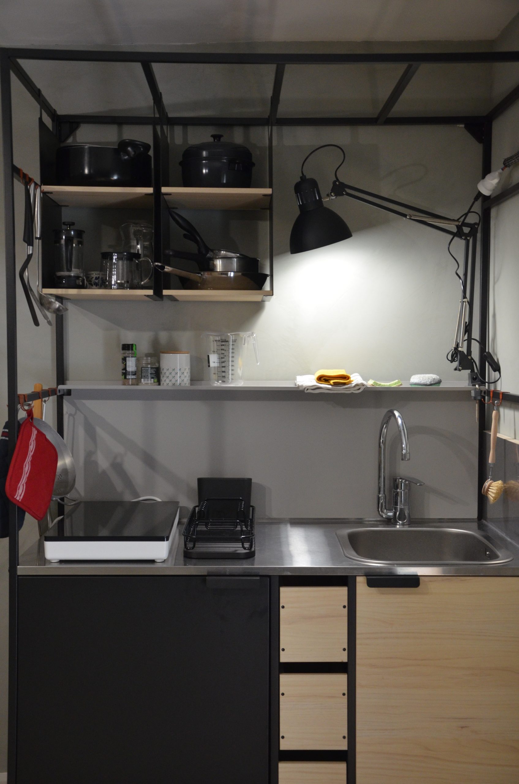Chauffage avec poêle à bois et toilette sèche (sur le palier)