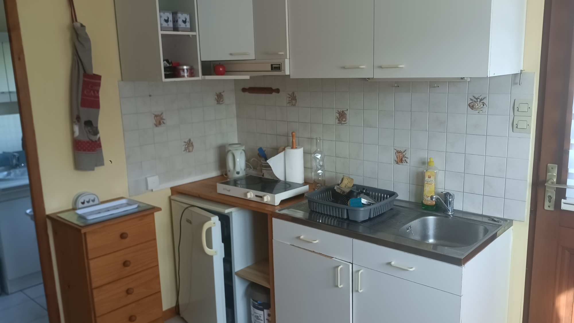 Situé au rez-de-chaussée de la maison des propriétaires, cet appartement entièrement privatif offre un confort optimal pour 4 personnes, avec des espaces bien agencés et fonctionnels. Vous apprécierez sa pièce de vie conviviale avec coin cuisine entièrement équipé (plaque de cuisson, micro-ondes, réfrigérateur, vaisselle complète…), idéale pour préparer vos repas en toute autonomie. Le logement dispose également d’une connexion wifi et d’une télévision fibre pour vos moments de détente.