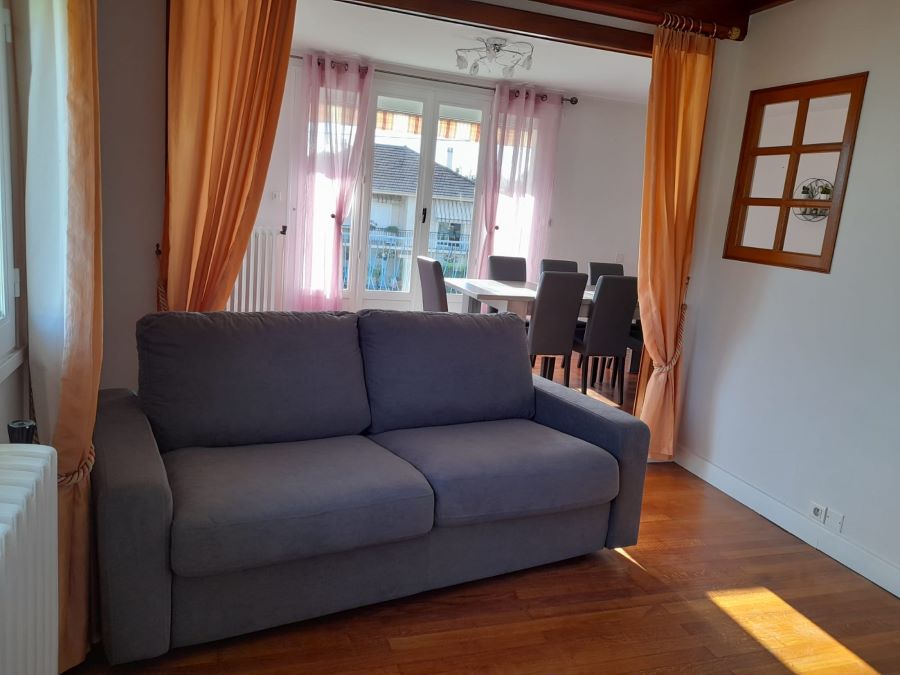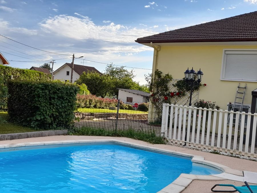 Cette maison indépendante située au calme se compose au RDC, d'un petit coin salon avec cheminée à bois (fourni gratuitement), de 2 chambres, l'une avec 2 lits simples et la seconde avec 1 lit en 140, d'une buanderie avec douche et WC, d'une véranda et d'un garage. A l'étage, cuisine intégrée toute équipée, salon avec TV et canapés convertibles (possibilité d'accueillir 1 ou 2 personnes supplémentaires sur demande et avec supplément), salle à manger offrant un accès direct au balcon avec salon de jardin, chambre avec un lit double en 140, salle de bain avec baignoire et WC indépendant. Côté extérieur, vous pourrez profiter d'une piscine clôturée de 8*4 mètres (avec 1.5 mètres de profondeur au maximum) et d'un pool-house. Des transats et un barbecue seront également à votre disposition. Pour votre plus grand confort, les lits seront faits à votre arrivée et les linges de toilettes sont fournis. Idéalement situé pour partir à la découverte de la ville thermale de Lons le Saunier, de Louhans et son célèbre marché, ou encore de la région des lacs. Note : gîte accessible PMR (monte-escalier)
