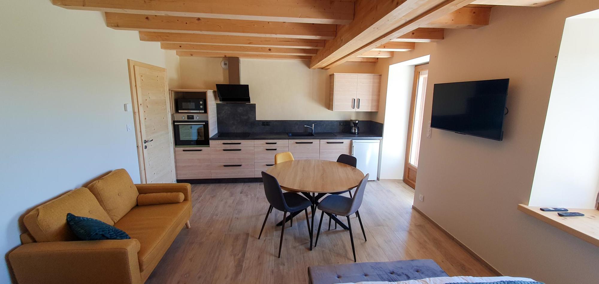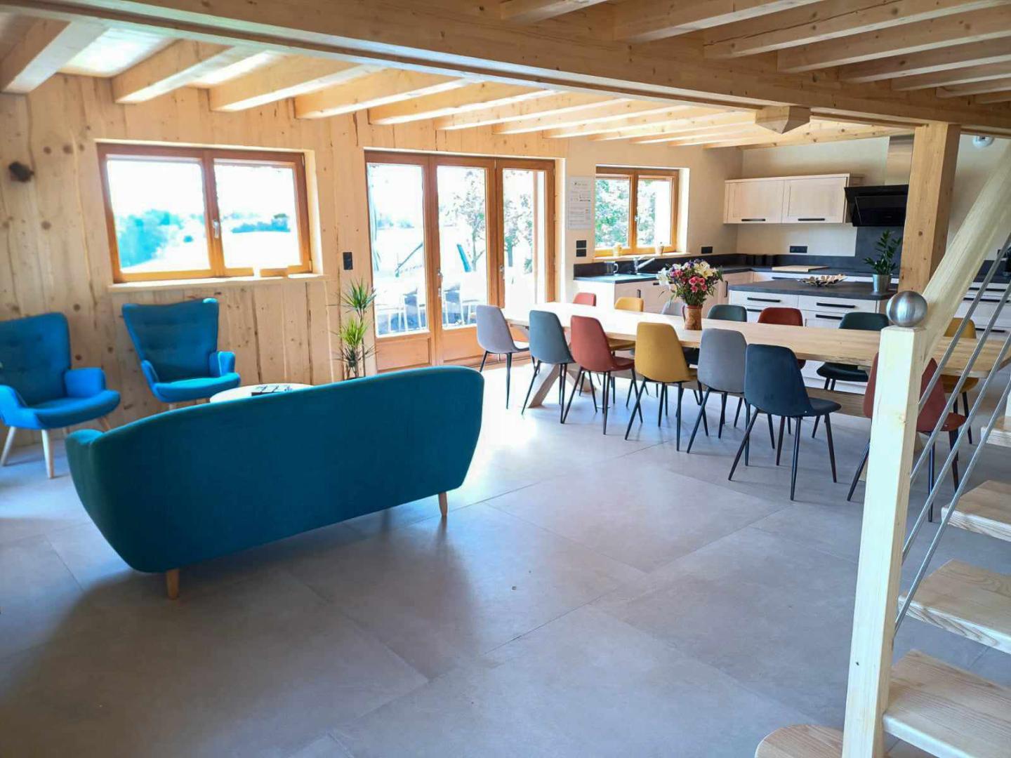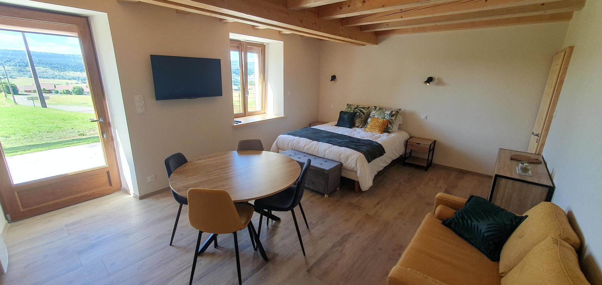 Besoin de vous ressourcer? de partager des moments conviviaux en famille ou entre amis? alors bienvenue au gîte du soleil couchant. Cette maison entièrement rénovée alliant le bois et la pierre, se compose au RDC d'une vaste pièce de vie avec cuisine équipée, espace salle à manger et coin détente, d'un espace bien-être avec spa (avec douche et WC), d'une suite parentale accessible PMR avec 1 lit double (160*200), une salle d'eau avec douche et WC, d'un studio équipé d'une cuisine, d'1 lit en 160*200, d'une salle d'eau avec douche et WC (idéal pour 2 personnes qui souhaitent avoir plus d'indépendance). A l'étage, mezzanine avec coin salon/TV, salle de jeux avec baby-foot et jeu de fléchettes, 4 chambres : 2 chambres avec 1 lit double (160*200) et 1 lit simple (90*200) et 2 chambres avec 2 lits simples (90*200) pouvant être jumelés, 2 salles d'eau avec douche et 2 WC indépendants. Pour votre plus grand confort, les lits seront faits à votre arrivée et les linges de toilettes sont fournis. Côté extérieur, vous pourrez profiter d'une terrasse avec salon de jardin, transats, barbecue, aire de jeux pour enfants et terrain de pétanque. Des panneaux solaires permettent d'alimenter la maison en eau et chauffage. Idéalement situé, vous trouverez une fromagerie à 200 mètres et un restaurant à 500 mètres. Le centre du village est à 2kms (restaurants, supermarché, fromagerie, bureau de tabac...). Les sentiers VTT, ski de fond et raquettes partent depuis le gîte et un fil neige pour l'apprentissage du ski de descente se trouve à 2 kms. Le parc polaire de Chaux Neuve, les gorges de la Saine et de la Langouette se trouvent à une dizaine de minutes